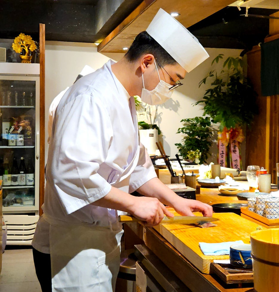 이제는 츠마미가 끝나고 드디어 스시의 차례. 열심히 스시를 쥐고 있는 강석영 셰프의 모습이 기대된다.