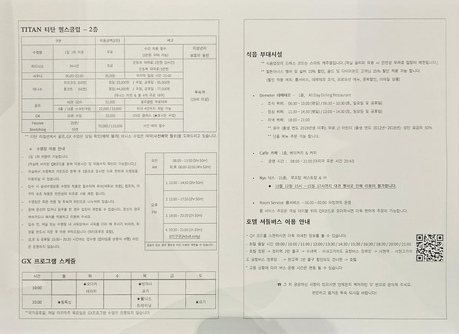 주요 시설: 실내수영장, 피트니스, 이그제큐티브 라운지