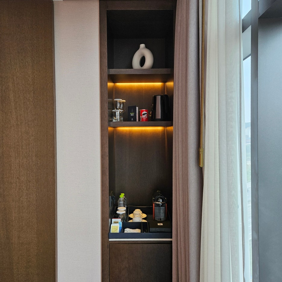 이번에는 감사하게도 룸 업그레이드를 받아, 트윈 프리미엄 코너룸에 숙박을 할 수 있었다. 항상 코너룸에 묵어보는 것이 소원이었는데, 이번에 꿈을 이루게 된다. 들뜬 마음으로 향하는 코너룸. 코너룸이니 당연히 맨 끝방이다.