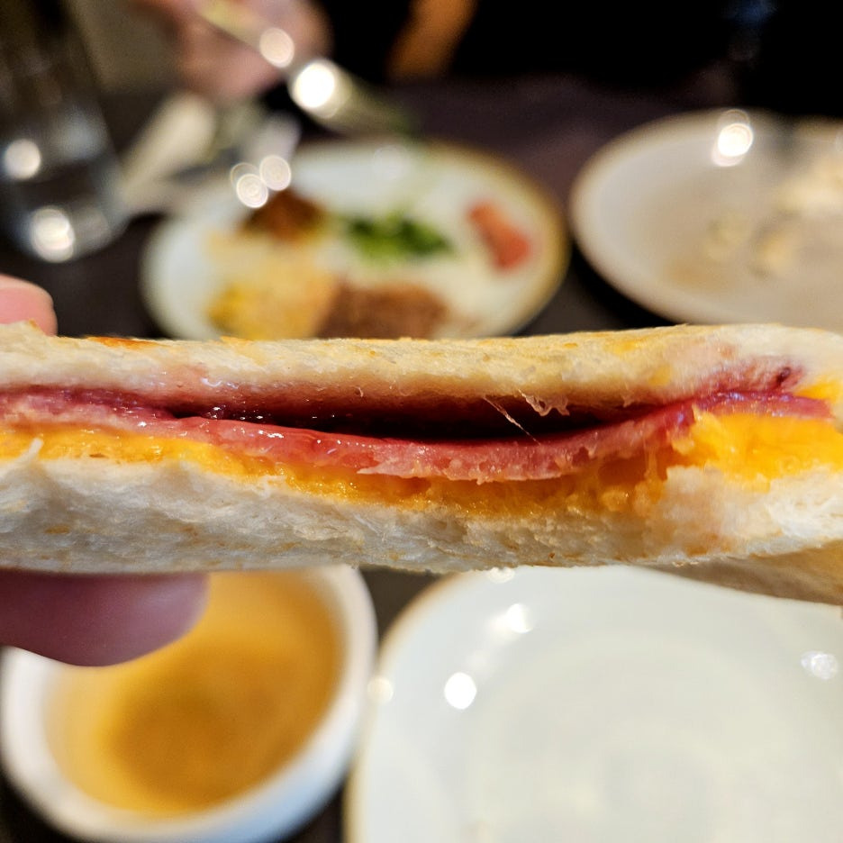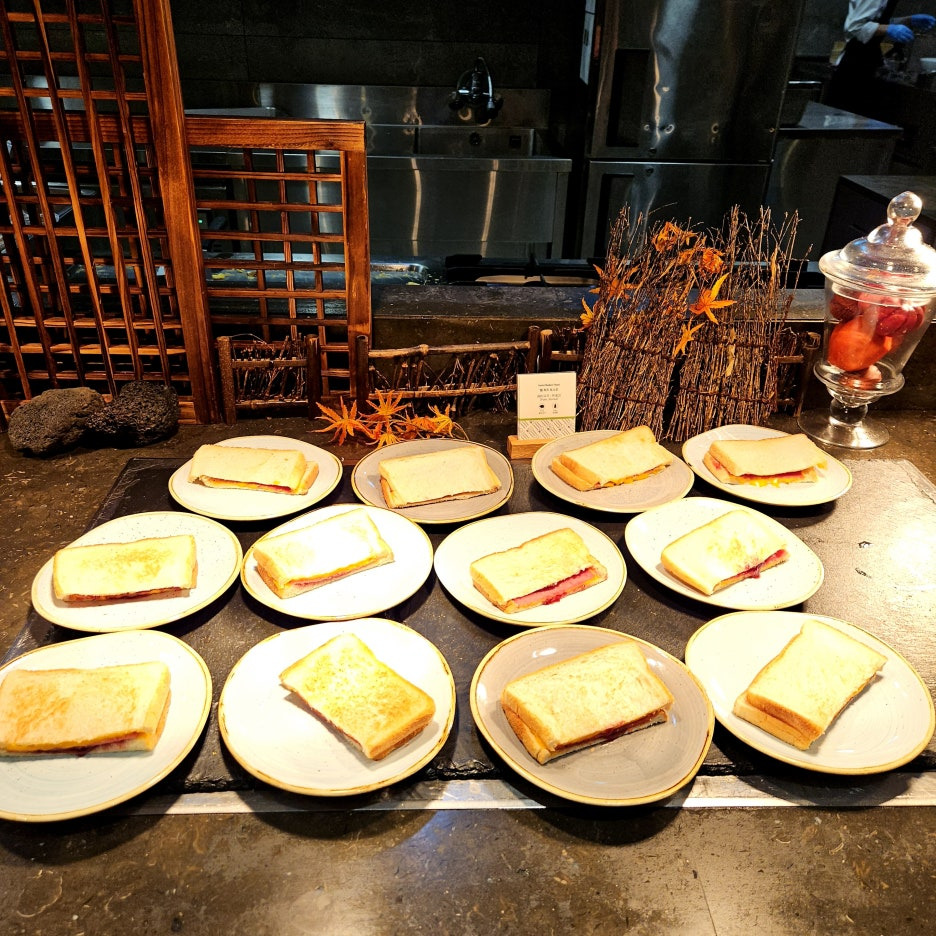 더블트리 바이 힐튼 서울 판교, 데메테르 조식 뷔페의 시그니처인 햄 치즈 토스트. 길거리 토스트를 생각하면 되는 형태지만 조금 더 호텔스러운 맛.