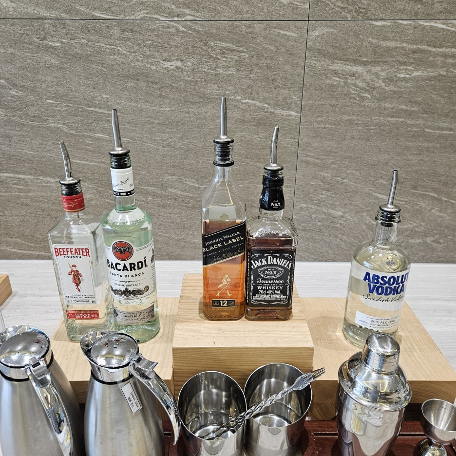 스리피트 종류도 5가지. 위스키는 잭다니엘과 조니워커 블랙. 보드카도 있고 진도 있다. 레몬도 있어서 하이볼이나 다른 칵테일 형태로 만들어 마실도 있다.