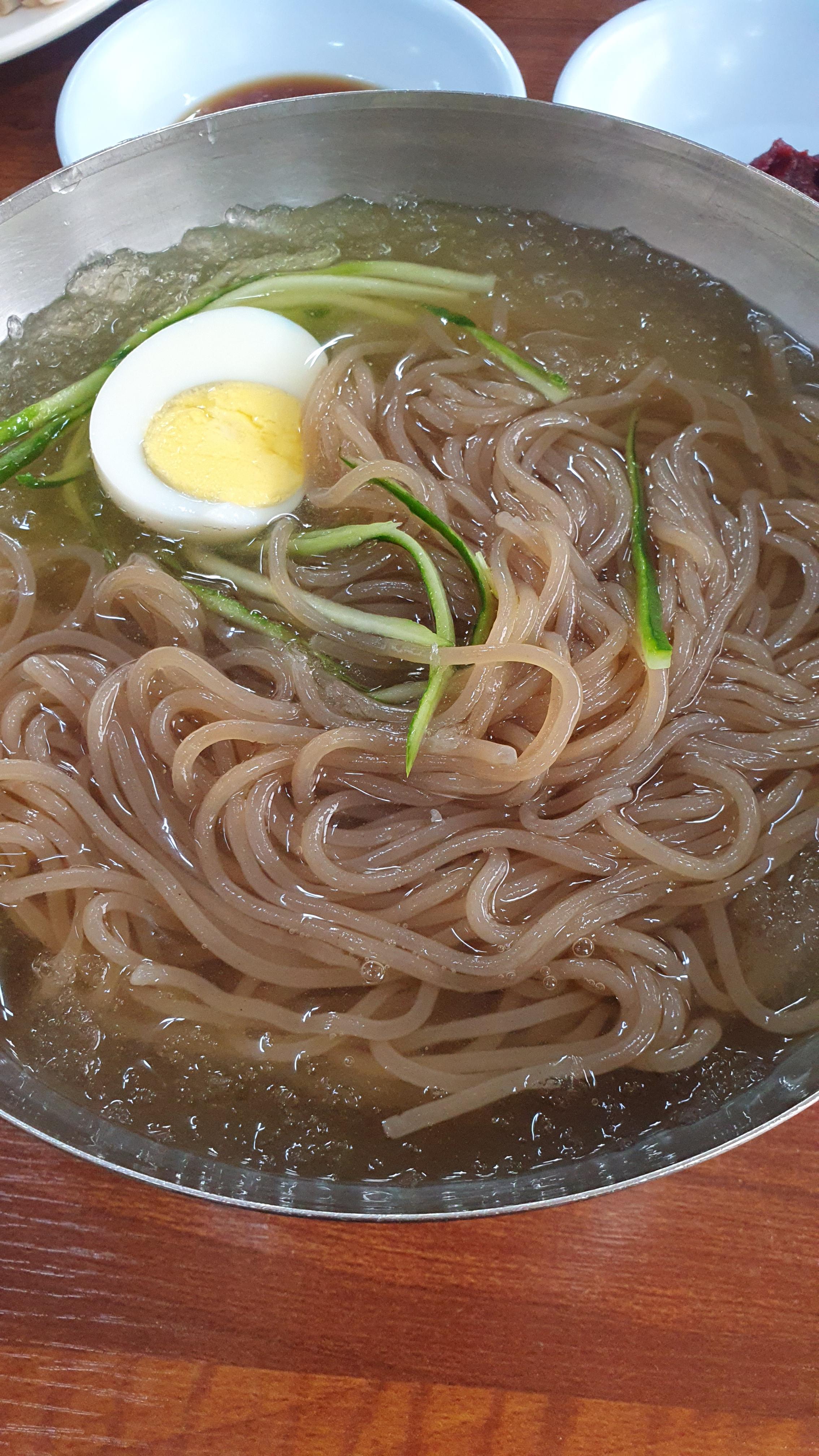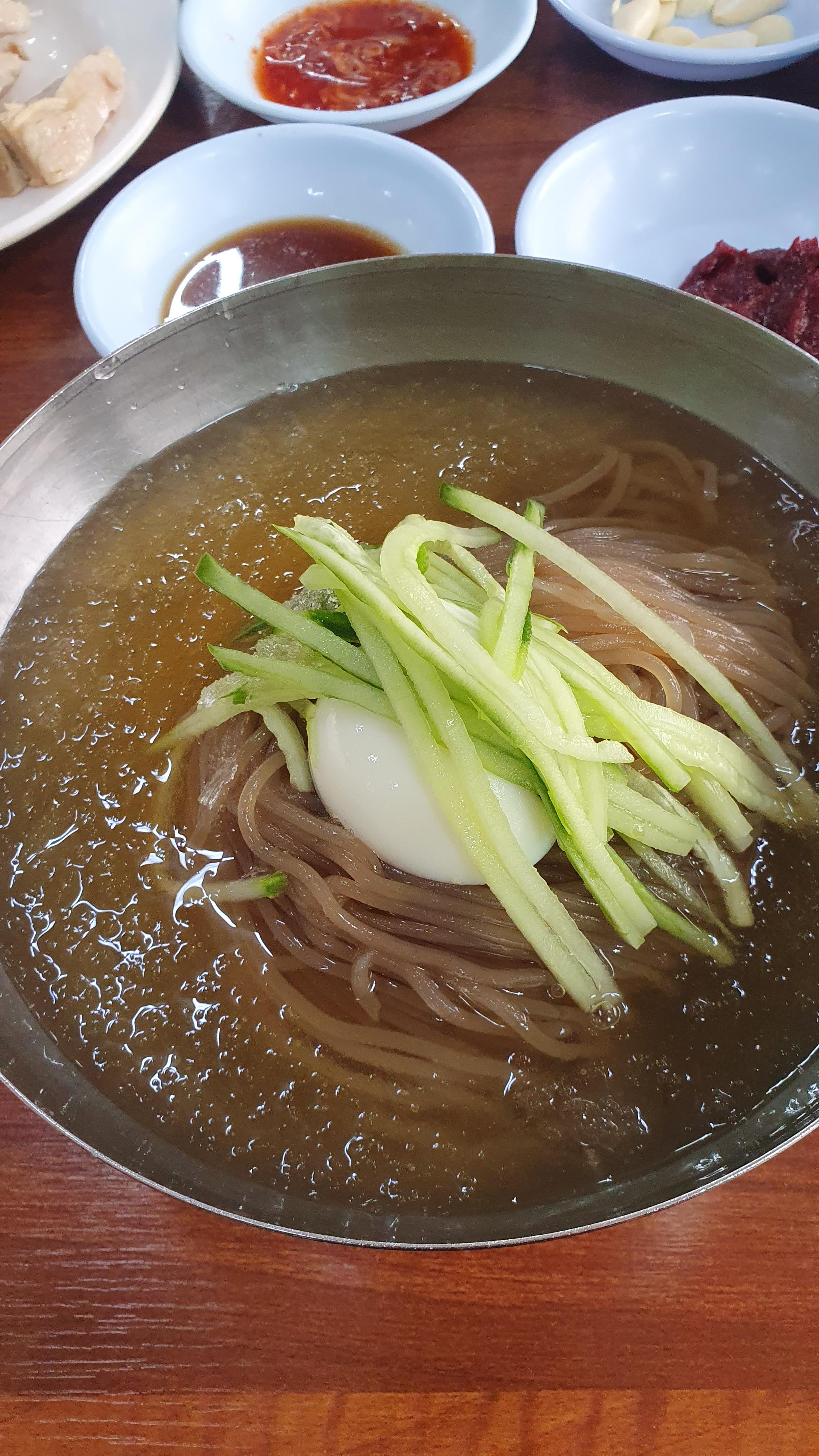 고기베이스의 평양냉면과는 다른 느낌으로 단백하여 깔끔하게 입안을 만들어준다.