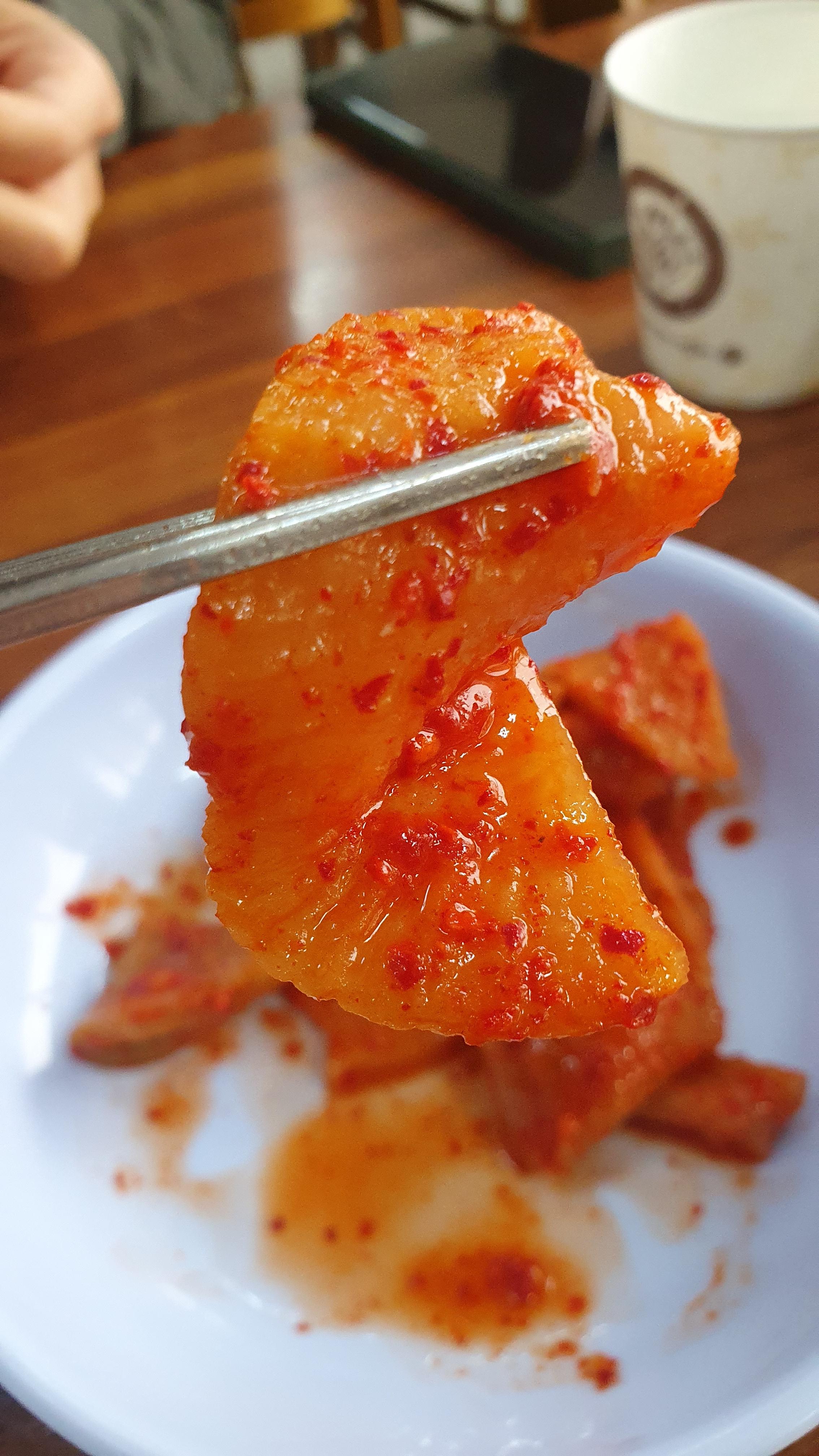 잘못된 방법일지도 모르겠지만, 먹다 살짝 남은 무김치는 셀프 포장해왔다.