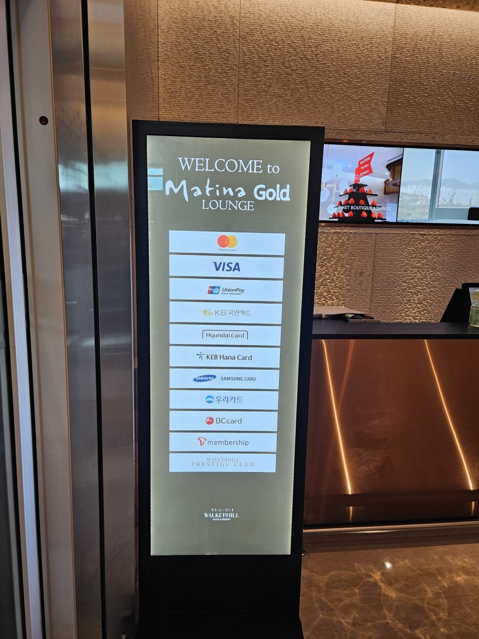 마티나 골드의 입구 모습이다. 입장 가능 혜택이 있는 여러 제휴 카드들의 안개가 있다. 또한, 일반 마티나 입장 가능 혜택이 있는 카드를 소지하고 있을 경우, 추가 1만 원으로 마티나 골드 입장이 가능한 업그레이드 이벤트를 하고 있다는 안내도 있다. 입장 혜택은 각 카드사 및 카드 종류에 따라 천자만별이니 카드사에 확인하시기 바란다.