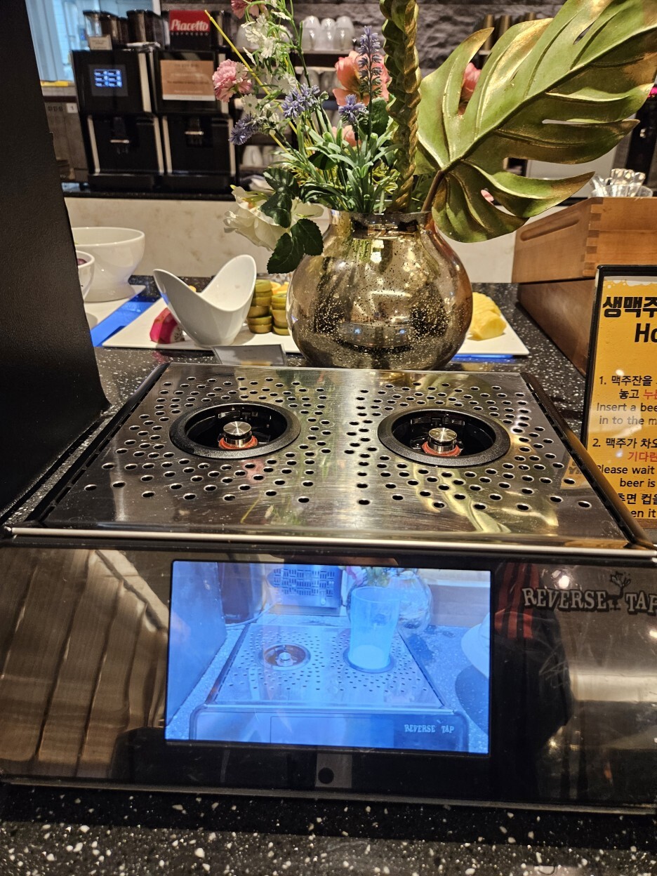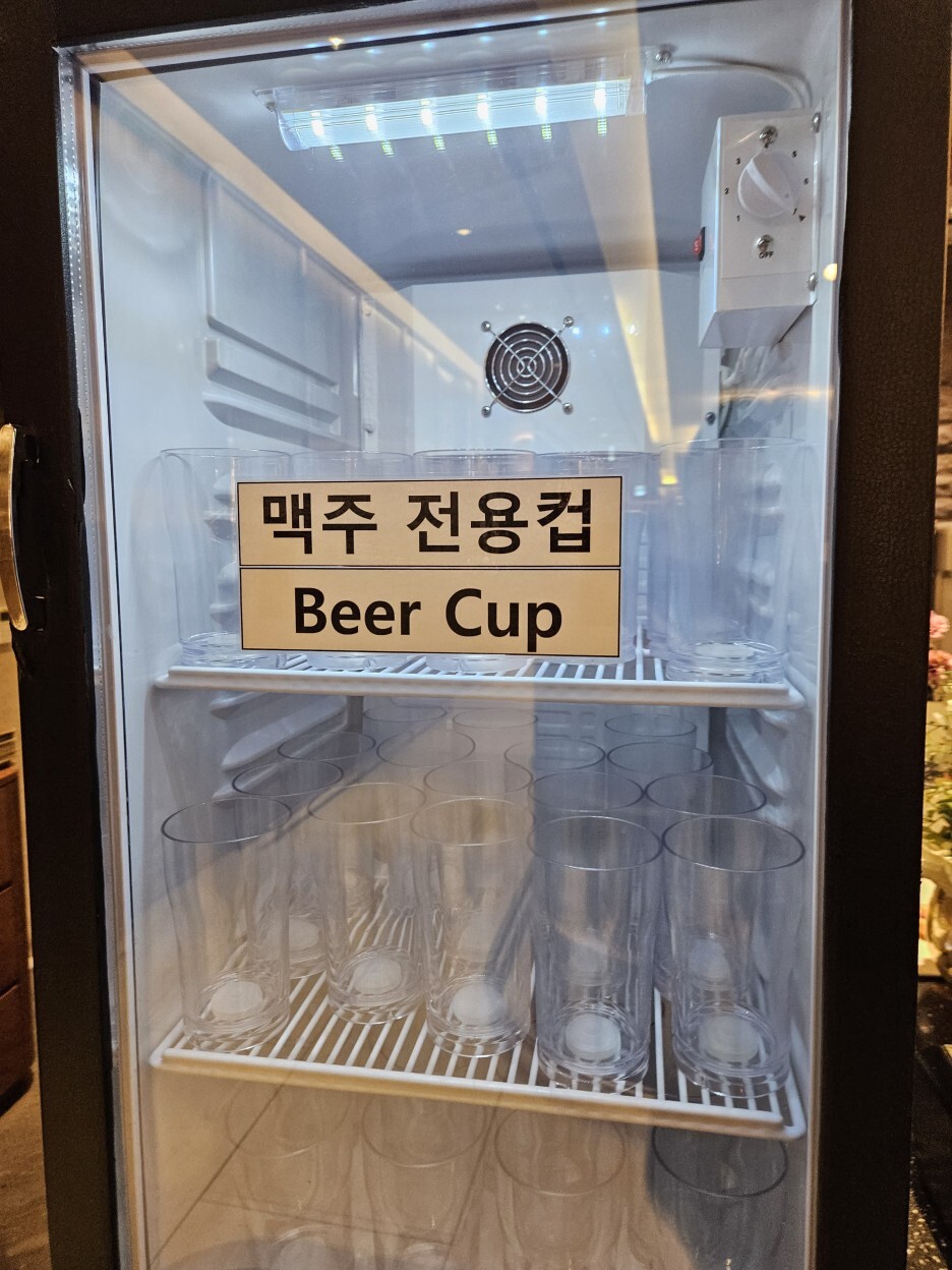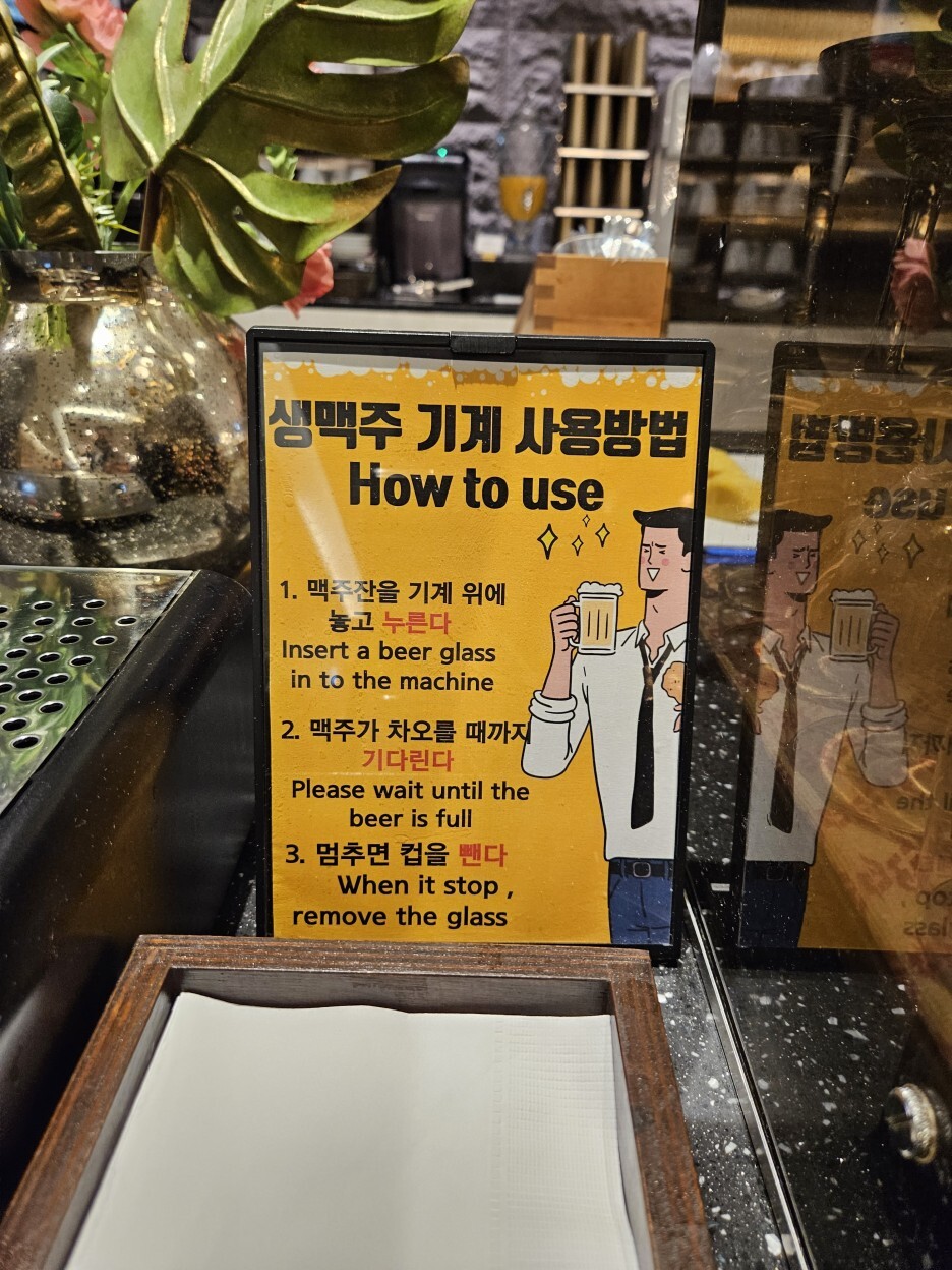 생맥주는 컵을 끼우면 아래서부터 자동으로 채워지는 방식. 이게 신기하고 편해서 좋긴 한데, 맥주컵을 들고 다닐 때 조금 흘러나오는 게 문제긴 하다.