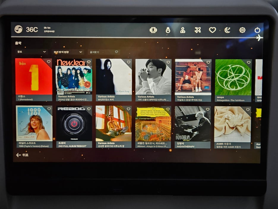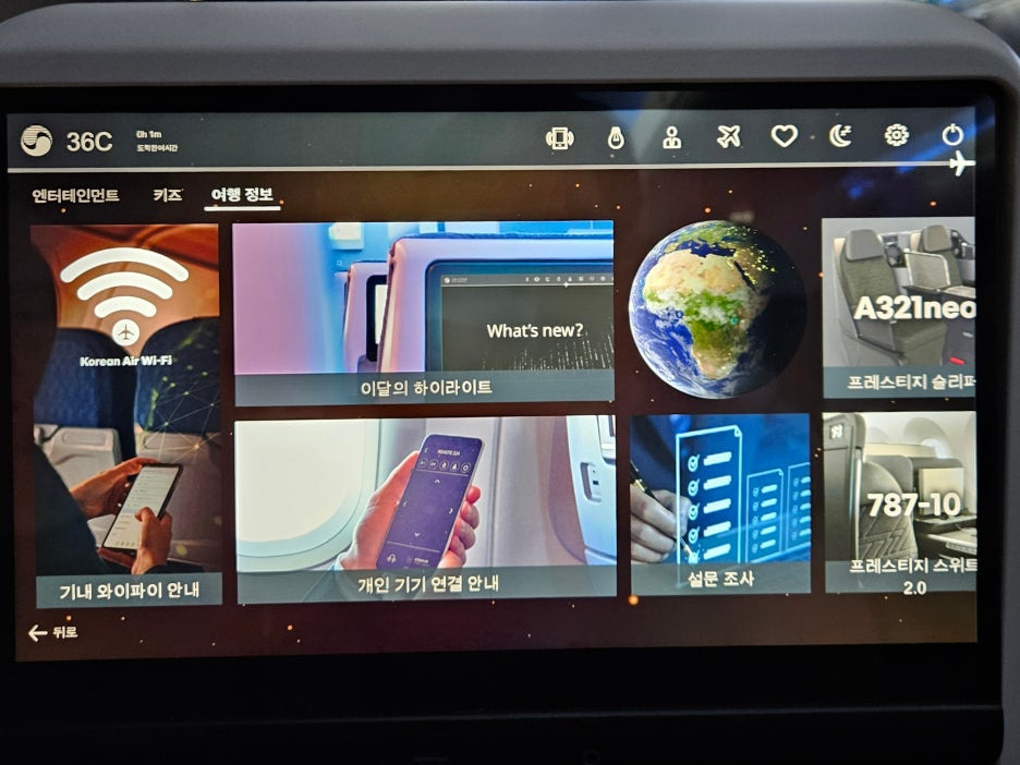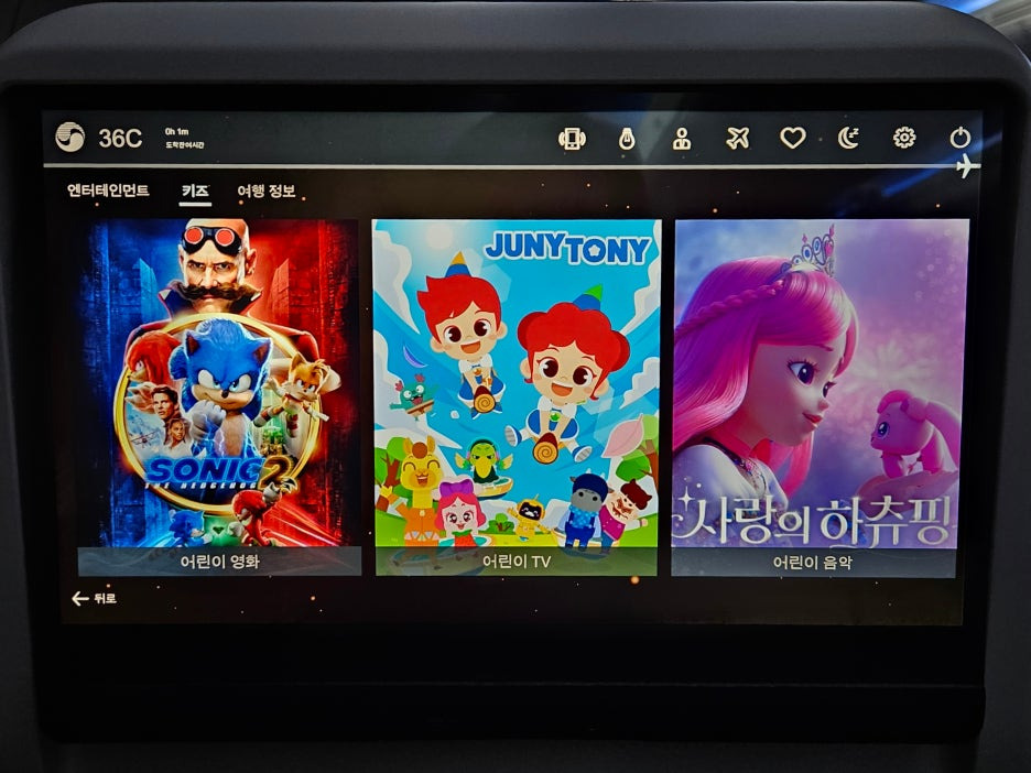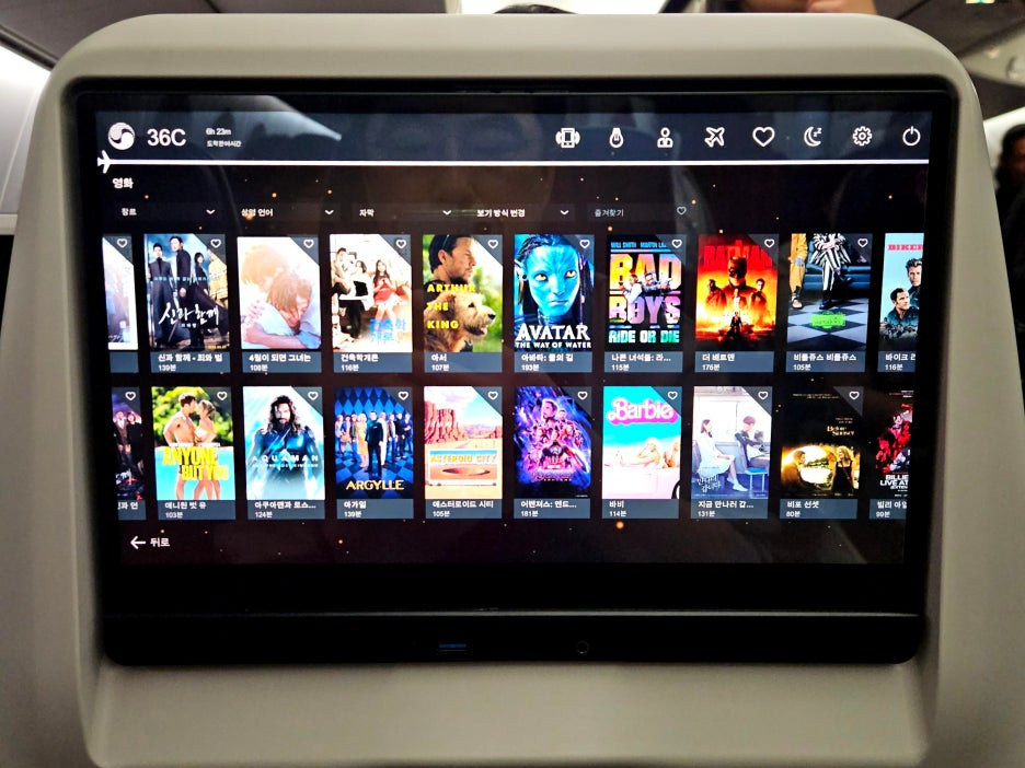 - 좌석 모니터가 너무 좋다. 요즘 괜찮은 태블릿이 그냥 좌석마다 박혀있다.
