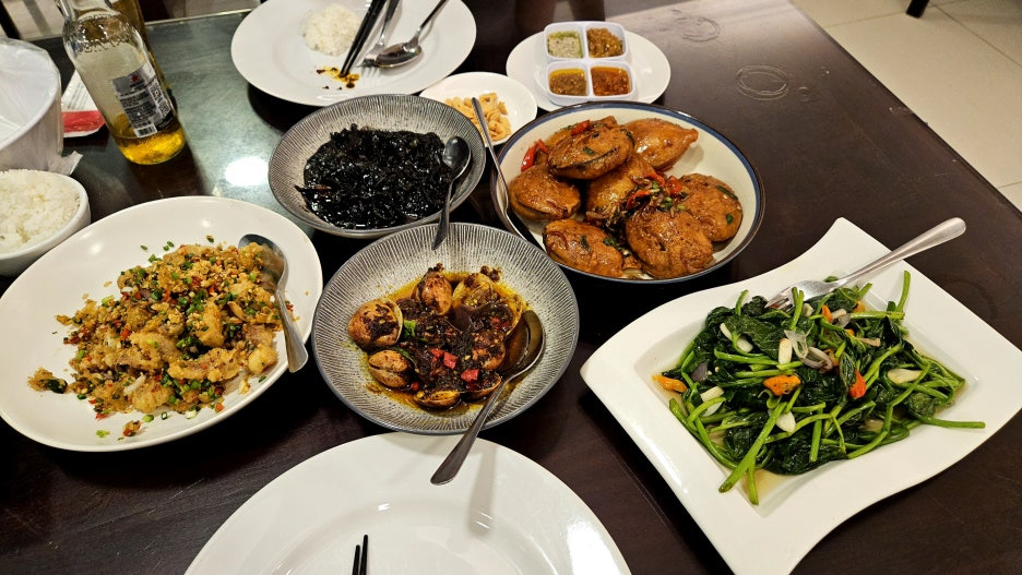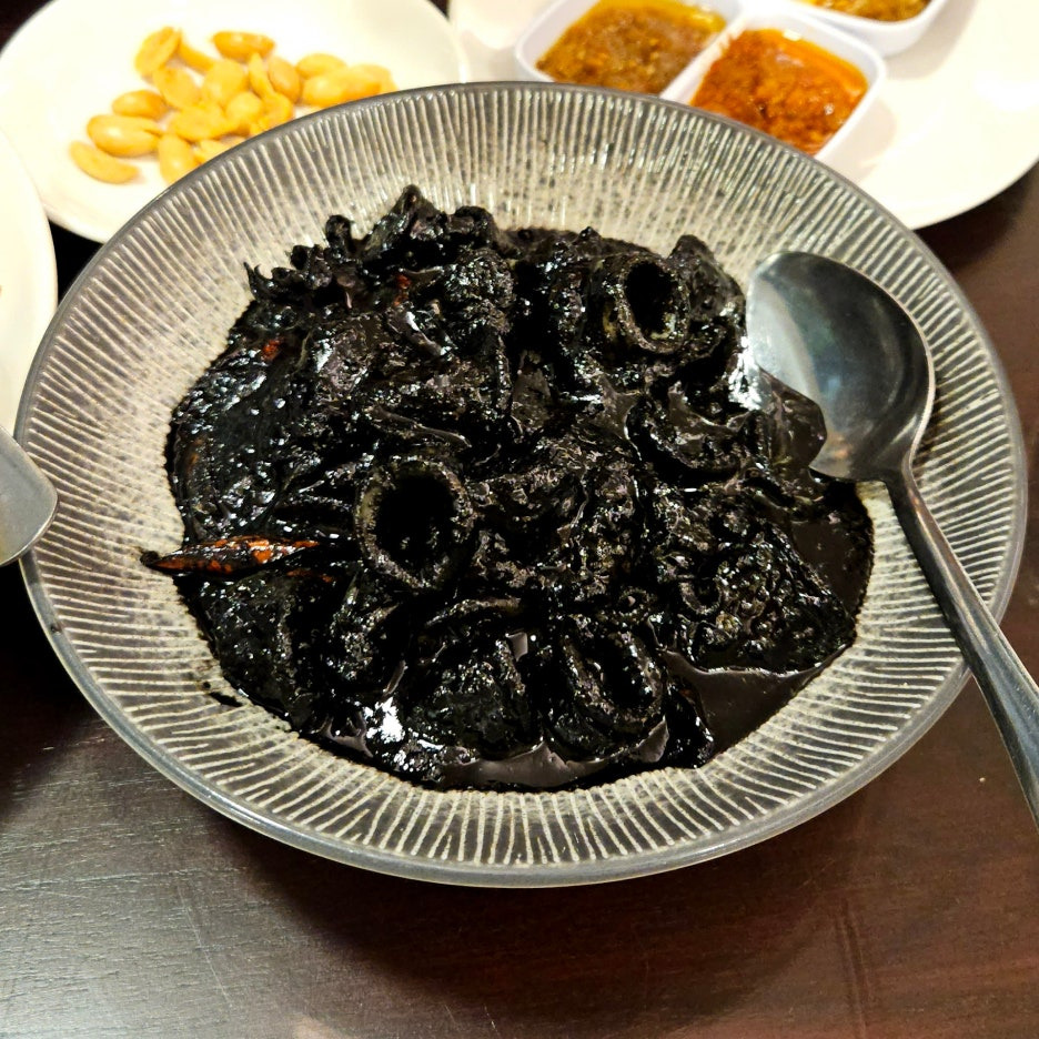 결론적으로 오늘 최고의 메뉴, 오징어 먹물 볶음. 엄청나게 맛있었다. 오징어 먹물에 삼발을 섞어서 소스를 만들었나 본데, 이게 정말 감칠맛이 입안에서 폭발을 하는 느낌이다.