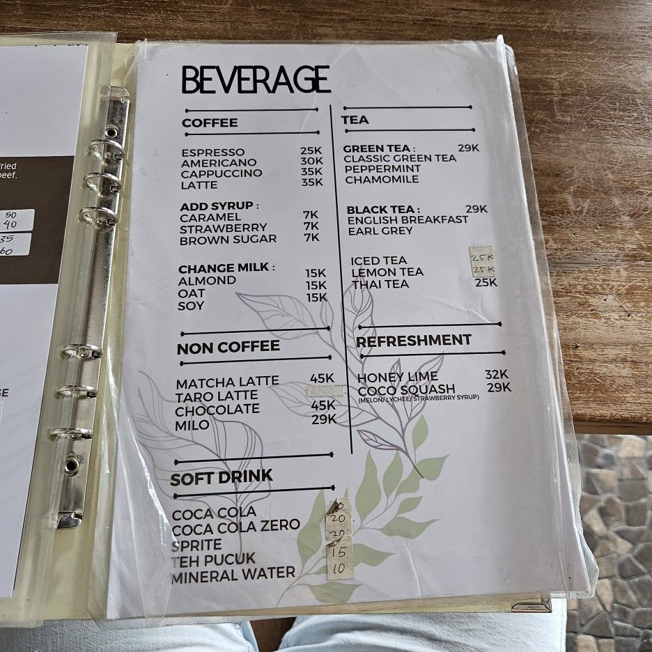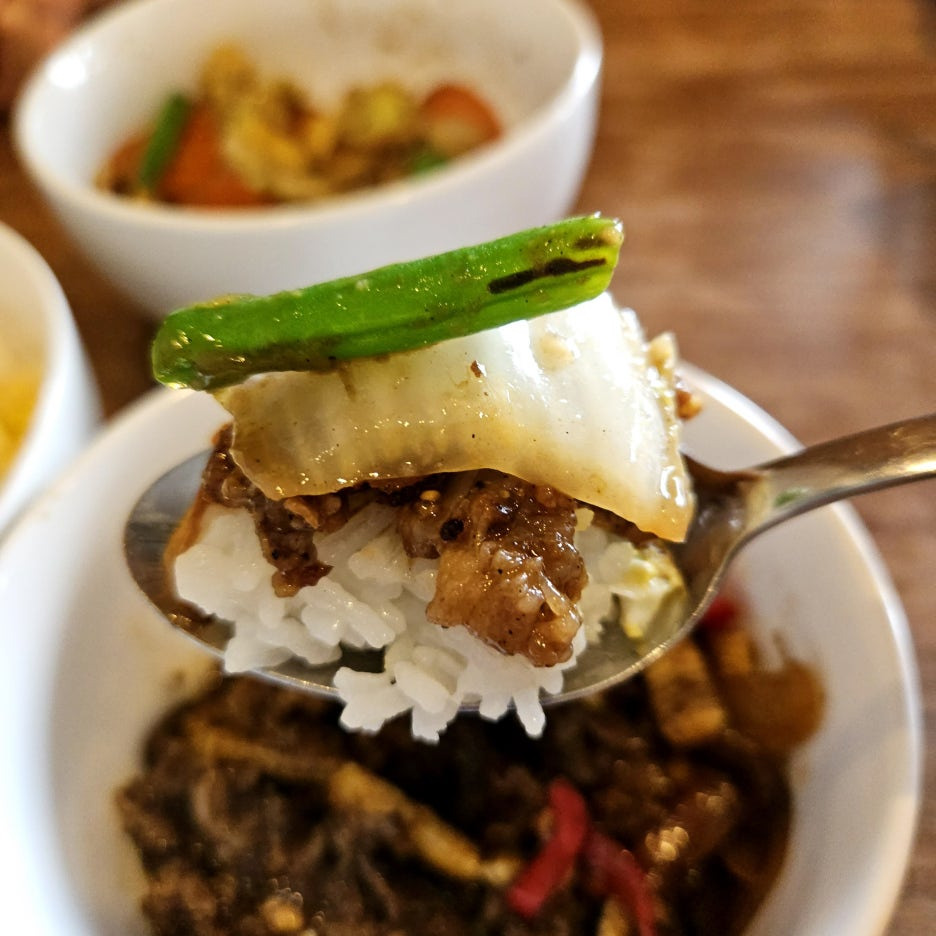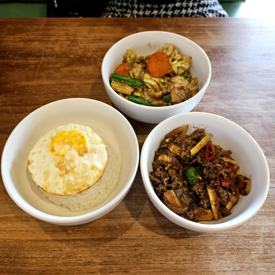 상차림도 아주 깔끔. 대부분의 동남아 식당과 동일하게 물은 따로 제공하지 않아, 음료 1개와 밥이 포함된 요리 메뉴 1개, 단품 요리 1개를 주문. 밥을 주문할 때는 달걀 프라이를 추가할 것인지 확인한다.