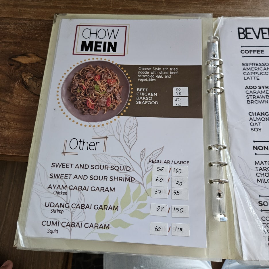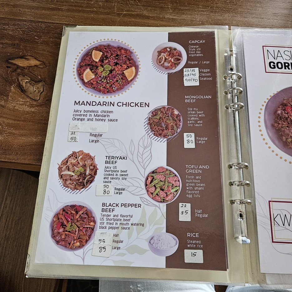 이외에도 많은 메뉴들이 있다. 치킨을 메인으로 한 요리들도 많고, 감자튀김, 완툰, 볶음밥, 볶음면 등 엄청 다양하니, 콘래드가 숙소일 경우, 호텔의 음식이 질리거나 조금 색다른 현지식을 먹고자 한다면 좋은 선택지일 듯.