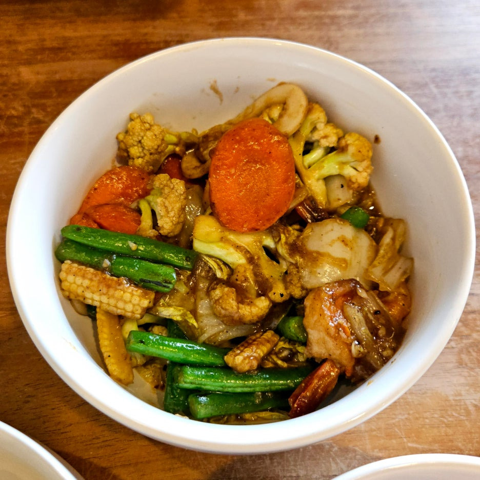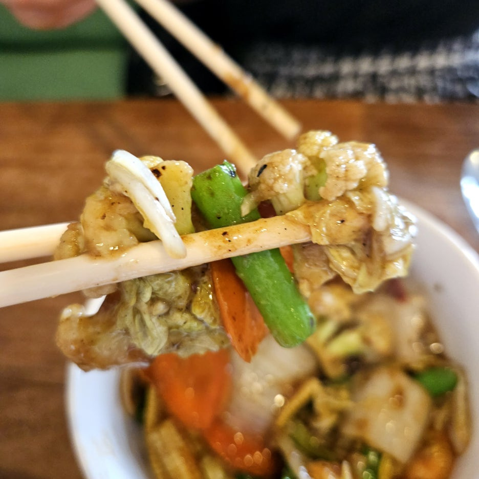 콜리플라워, 양배추, 당근, 배추 등 다양한 야채도 아삭아삭하게 잘 볶아져서, 한 그릇 뚝딱이다.