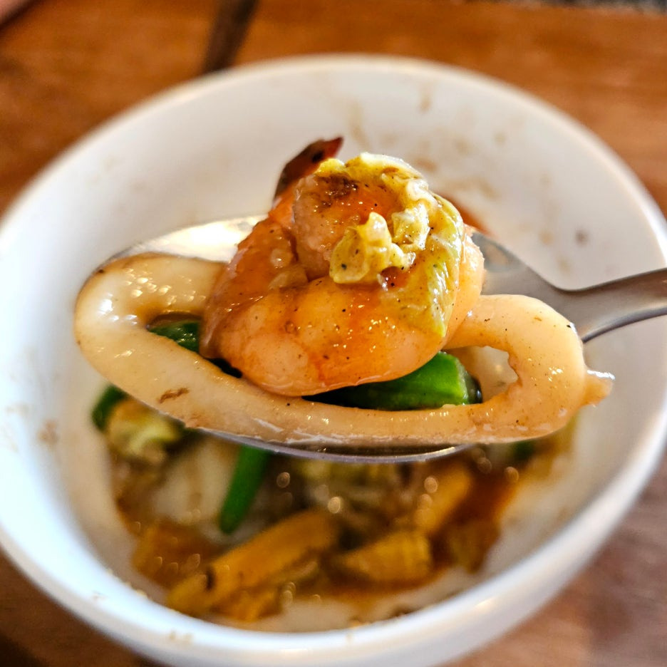 오징어도 많고 큼지막한 새우도 4개 정도 들어가 있었다. 오징어는 쫄깃, 새우는 탱글. 소스는 살짝 짭짤한 기름진 맛. 전혀 거부감 없이 잘 먹을 수 있는 맛.
