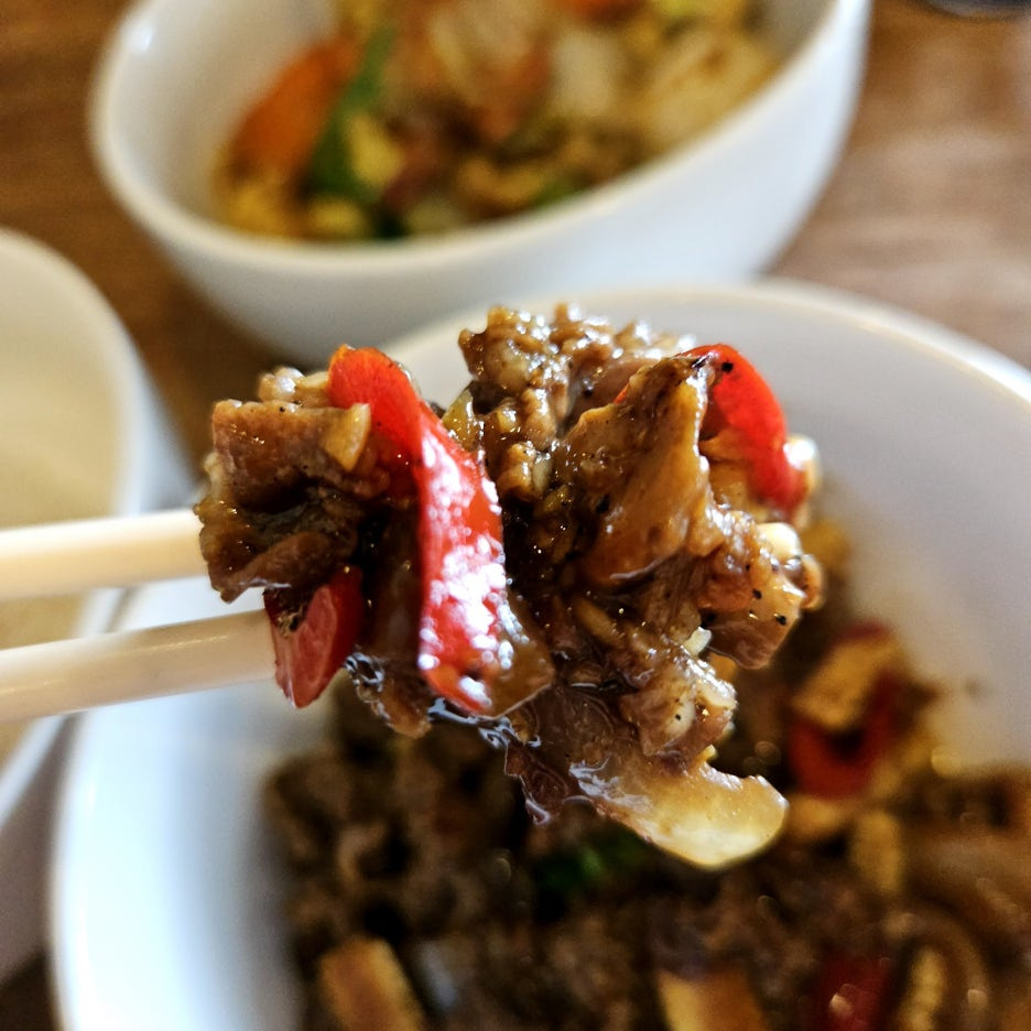 한국에 있는 미국식 중국집인 홀리차우나 판다 익스프레스에서 먹을 수 있는 몽골리안 비프와 완전 유사한 느낌의 요리. 매콤한 후추의 향이 강하게 올라온다. 소스는 살짝 짠 느낌이다.