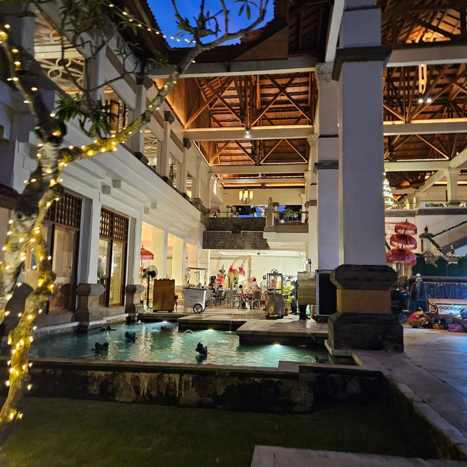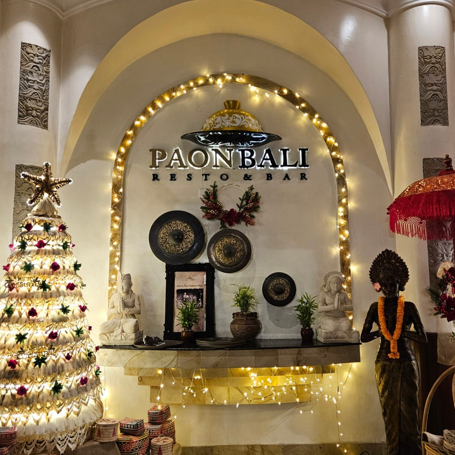 힐튼 발리의 인도네시아 전통 요리 레스토랑인 파온 발리. 로비층 아래에 위치해 있다. 크리스마스를 맞아 장식된 모습이 예쁘다.