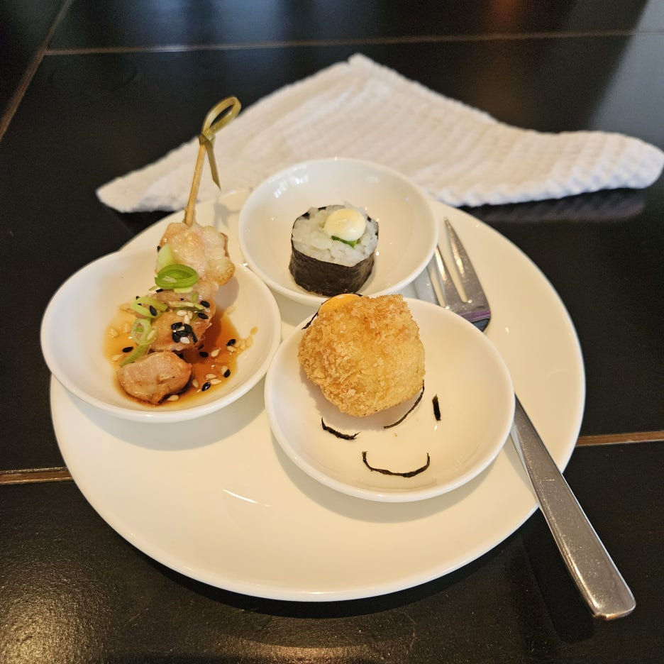 구운 버섯과 호박이 들어간 한 입 거리와, 치킨 가츠가 들어간 것. 모두 맛있게 잘 먹었다.