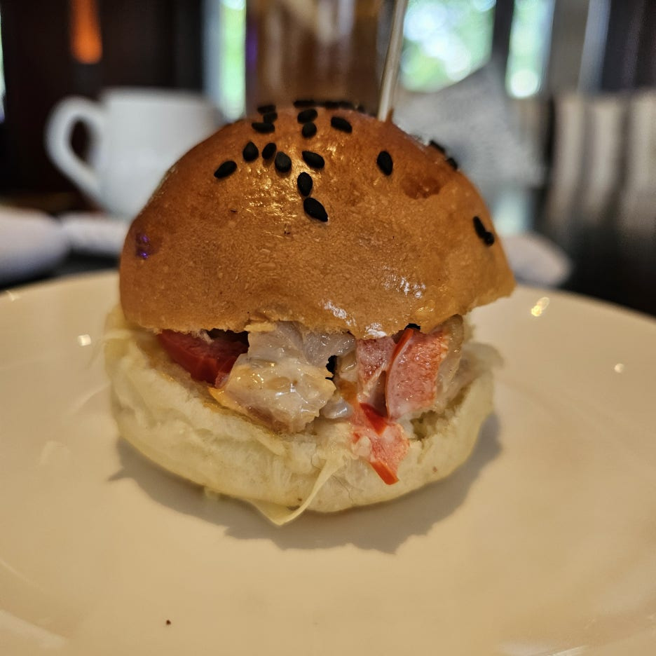 애프터눈 티에서도 먹었던, 초밥. 아래층이 일식 레스토랑 린이라, 모든 음식은 거기에서 만든 것을 제공하는 듯하다. 그래서 일본풍의 음식이 많은 듯.
