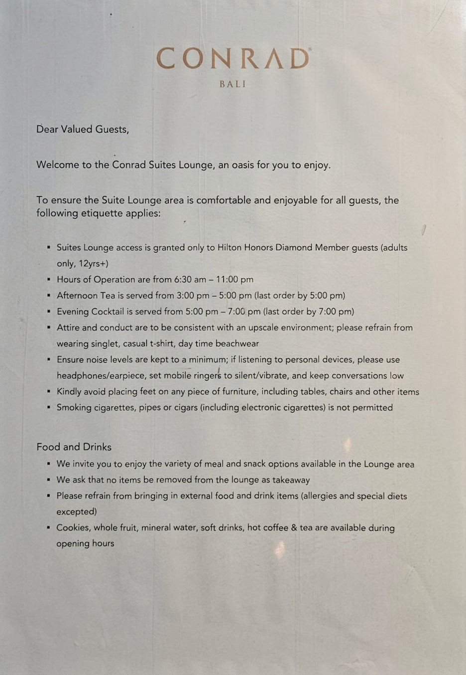 그런데, 우리가 방문한 2024년 12월 16일에는 이러한 형태는 가능하지 않았고, 반드시 스위트 라운지 또는 이스트 로비 라운지에서만 서비스를 받을 수 있었다. 조금 아쉬운 점이다.