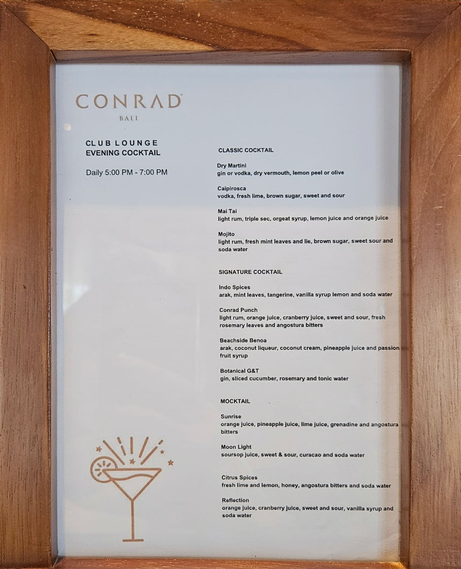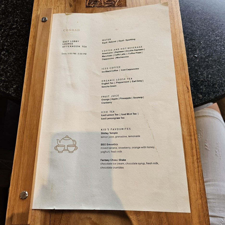 콘래드 발리를 방문하기 전에 다른 리뷰들을 찾아보았을 때에는, 콘래드 내의 모든 레스토랑에서도 애프터눈 티와 칵테일 아워를 즐길 수 있다고 보았다.