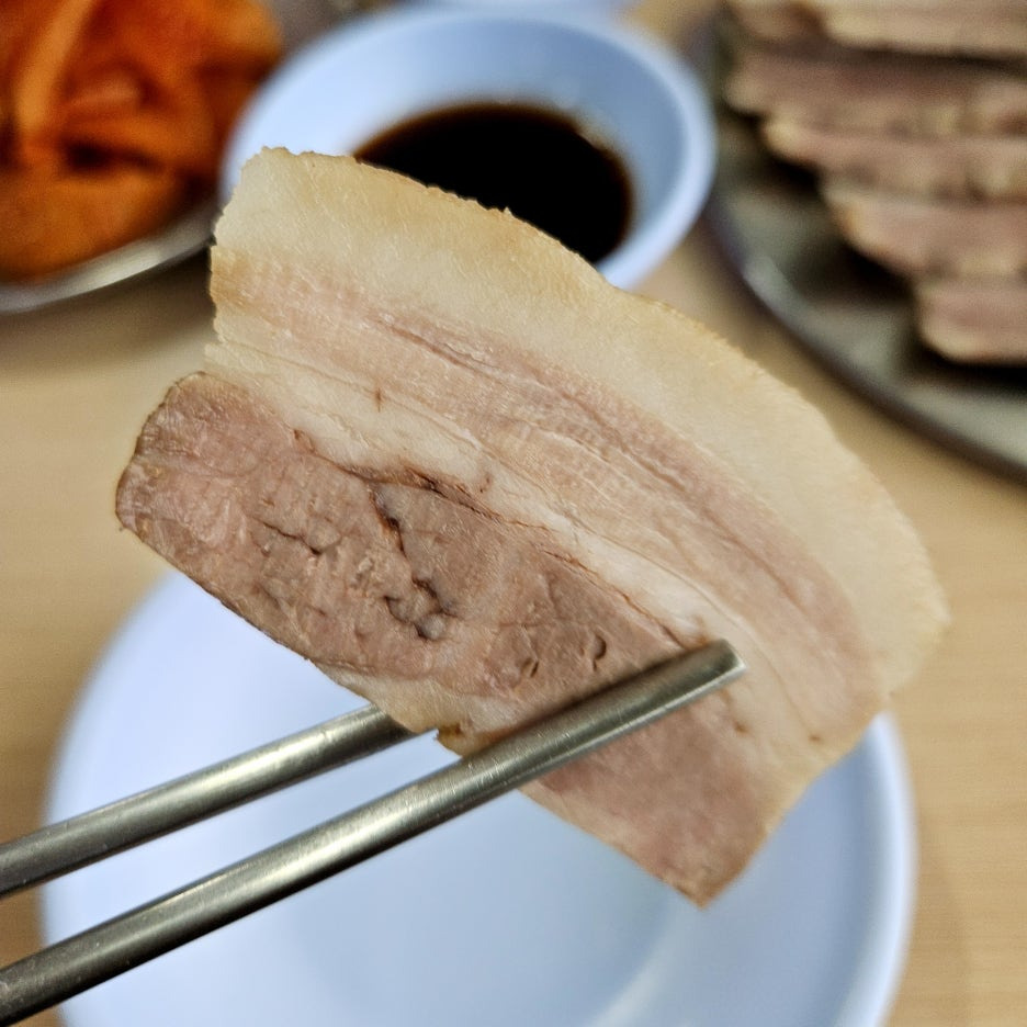 이곳의 편육은 평양냉면으로 유명한 을지면옥의 편육같이, 차가운 상태의 고기로 아주 얇게 썰어져 나왔다. 그러다 보니 아무래도 양이 적었다.