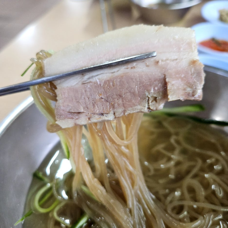 아마도 이곳의 편육은 냉면과 먹기 좋으라고 식혀서 주는 것 같았다. 고소한 면과 잘 어울이는 훌륭한 맛.