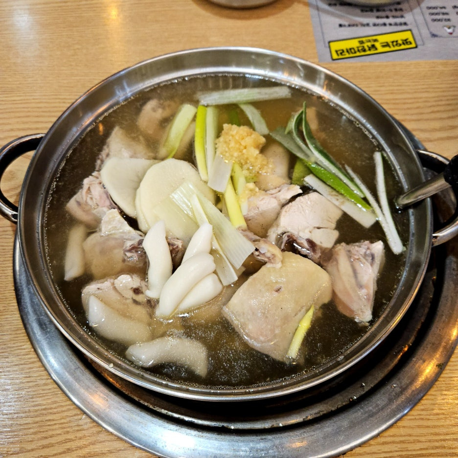 아내분께서 오시기 전에 미리 주문한 닭한마리. 생각보다 아주 빠르게 나왔다. 아마도 미리 준비를 해두고 있는 듯. 일반적인 닭한마리의 모습과 완전 동일하다.