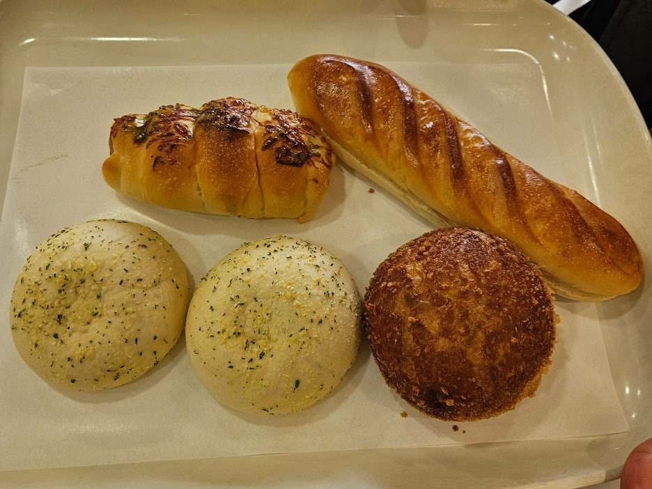 나는 이렇게 구매해 보았다. 소시지 빵, 쁘띠 프랑스, 카레 고로케. 그리고 치즈크림빵.