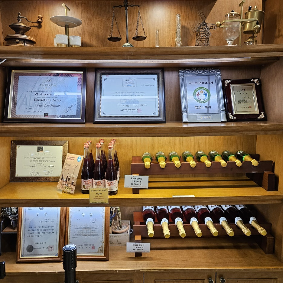 각종 상장과 무알코올 샴페인과 샹그리아도 판매하는 모습.