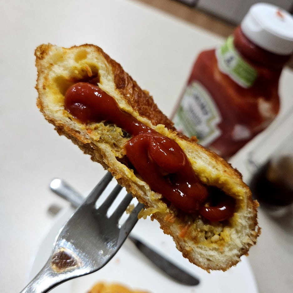 빵이 살짝 두꺼웠고 빵 자체의 맛이 대단하지 않아, 조금 아쉬웠다. 그래서 케첩으로 간을 했다.