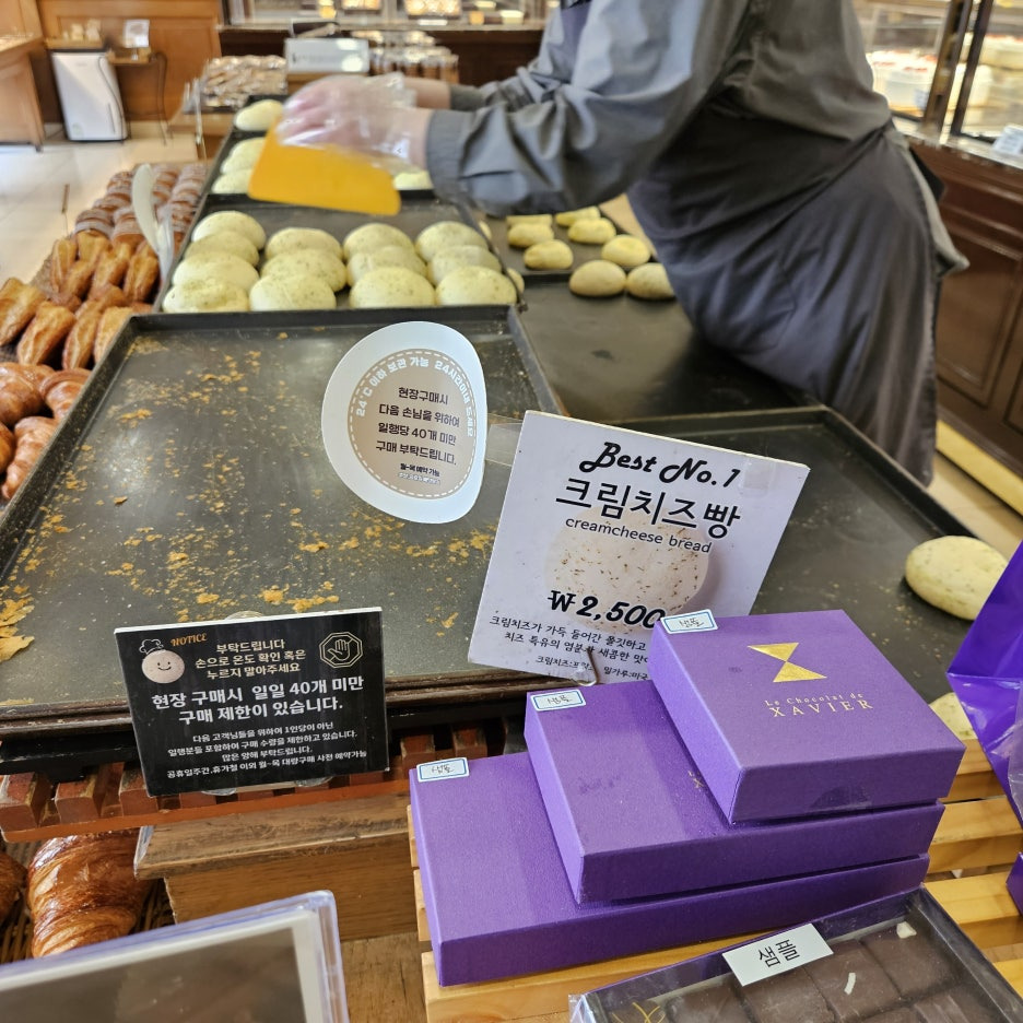 매장은 크지 않다. 대전 성심당에 비하면 정말 조그마하다. 군산 이성당에 비해서도 아주 작은 규모. 이렇다 보니 많은 인원을 한 번에 수용하지 못하고 줄이 길어지는 듯. 아침 일찍 찾았음에도 이미 크림치즈빵은 군데군데 많이 팔린 모습이다.