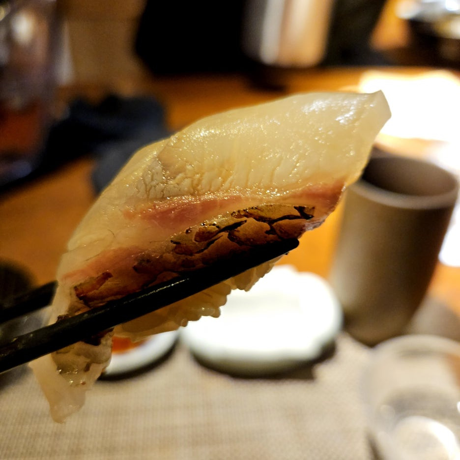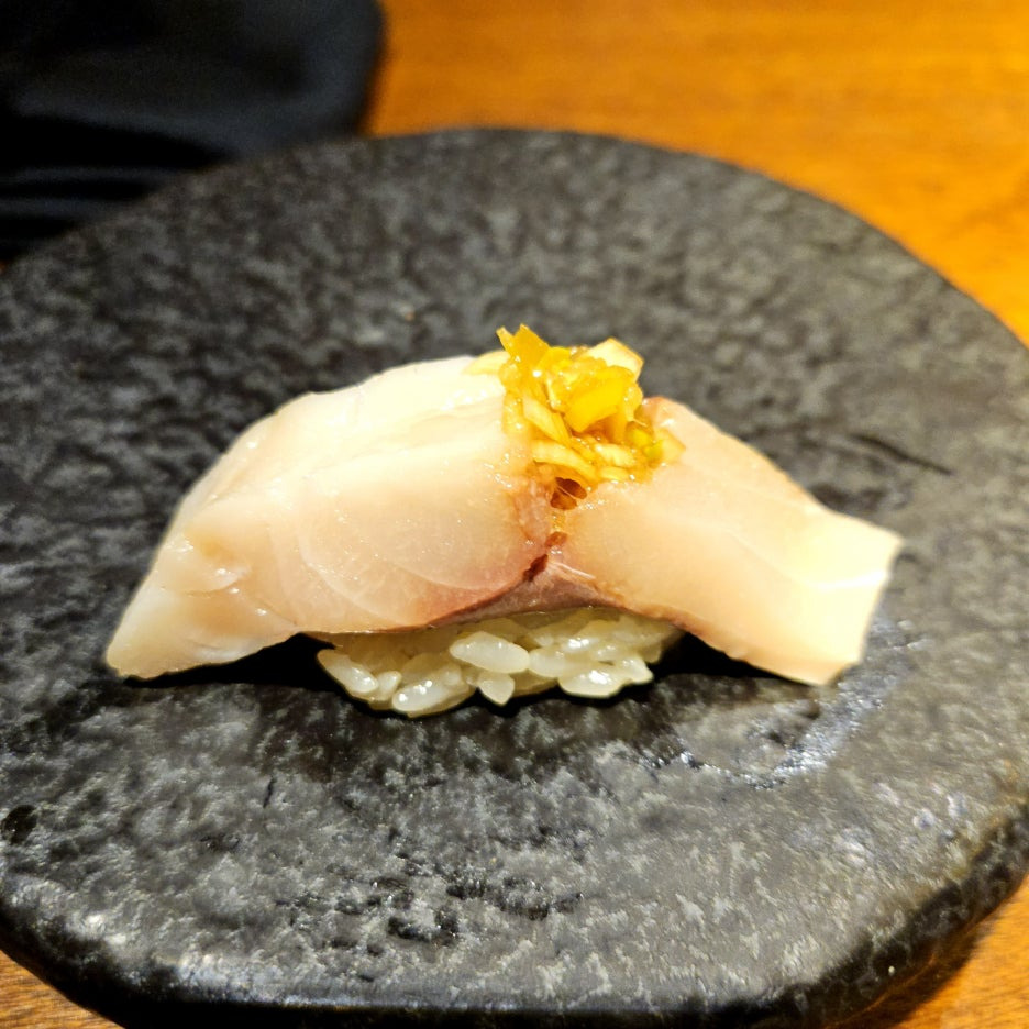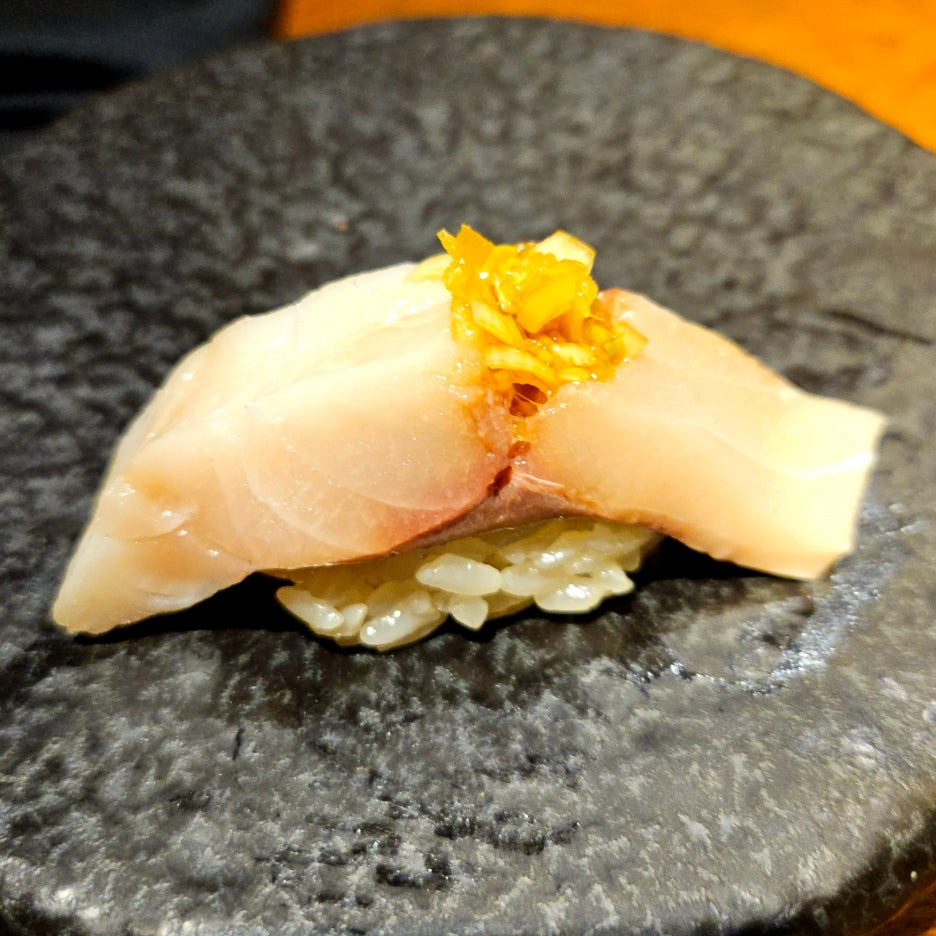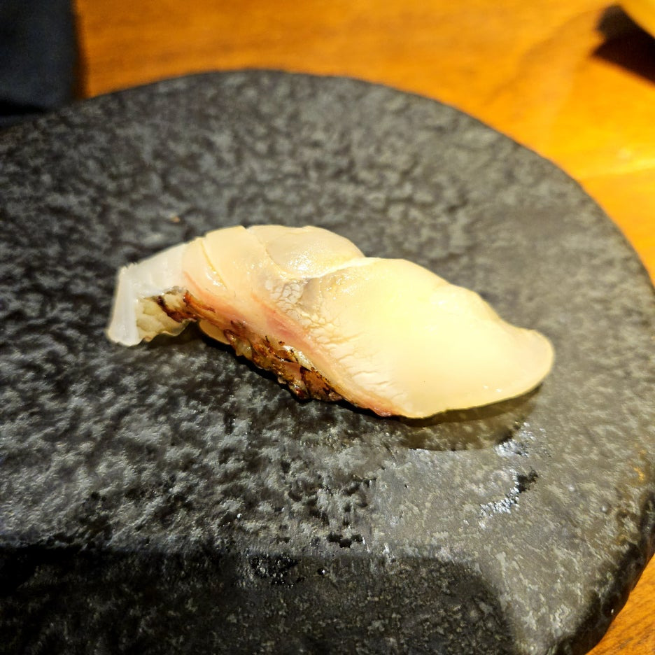 잘 숙성되어 부드럽게 씹히는 맛. 첫 점으로 시작하기 딱 좋은 흰 살 생선이었다.