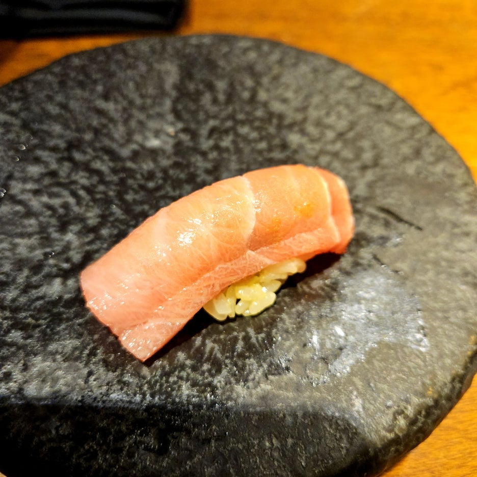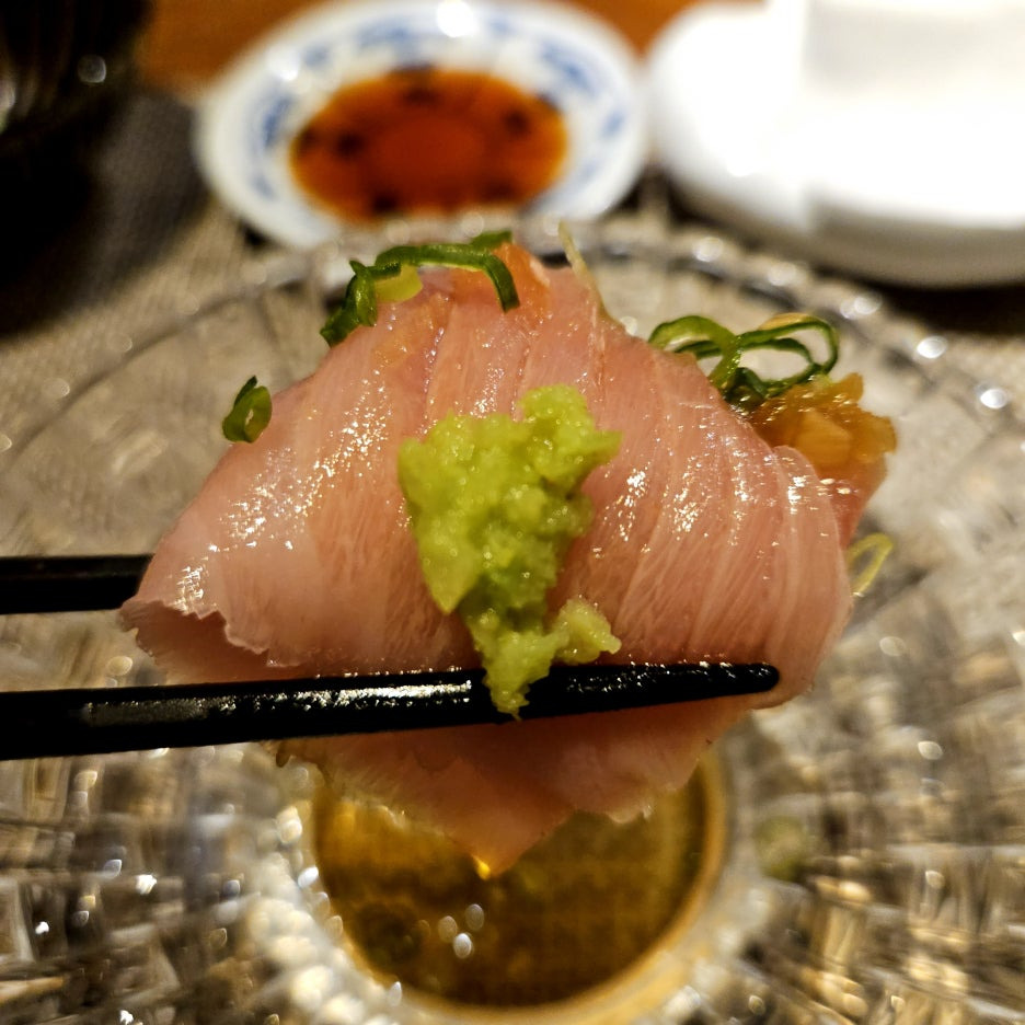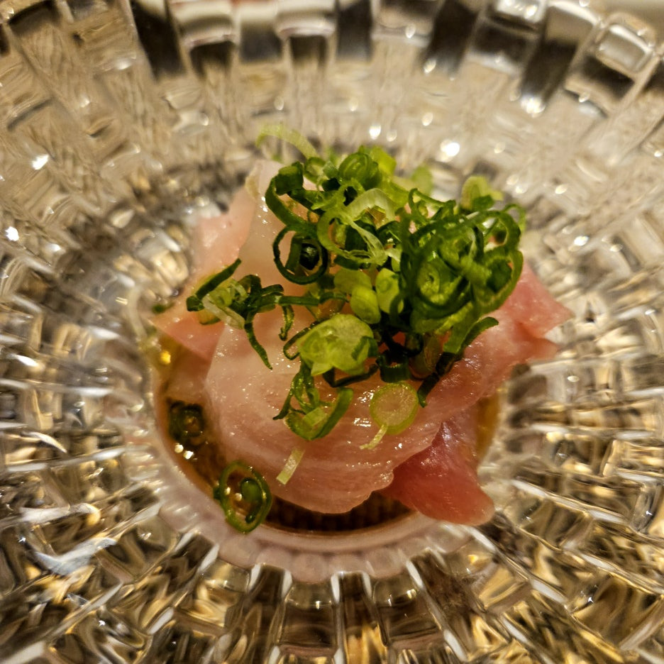 새끼 참치를 이틀간 숙성한 것이라고 한다. 폰즈 소스에 담겨있었던 듯하다.