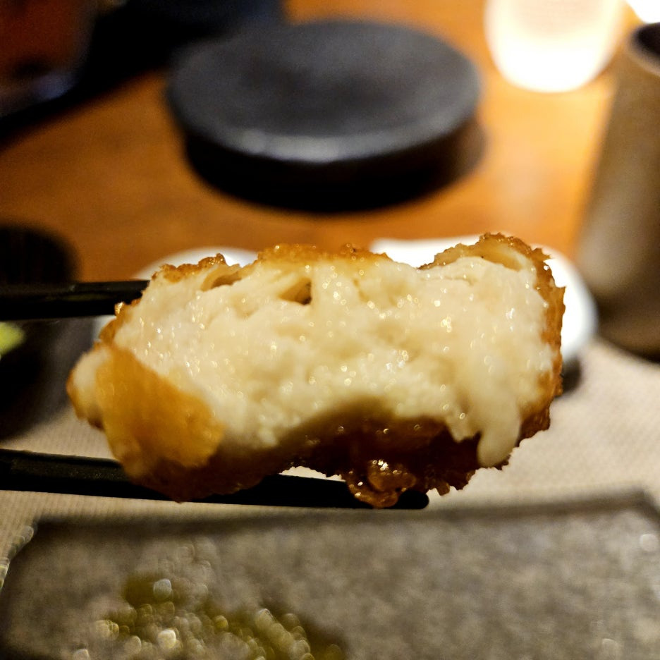 녹은 치즈? 크림? 같은 느낌의 정소는 고소하고, 아이스크림 튀김 같은 느낌까지 받는다.
