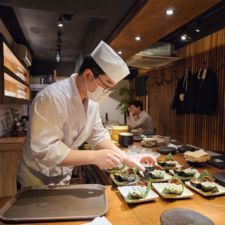 사키츠케(先付け)는 술을 한잔 마신 후 처음 나오는 안주를 의미하는 것으로 알고 있으나, 여기서는 편하게 애피타이저라고 생각하면 될 것 같다.