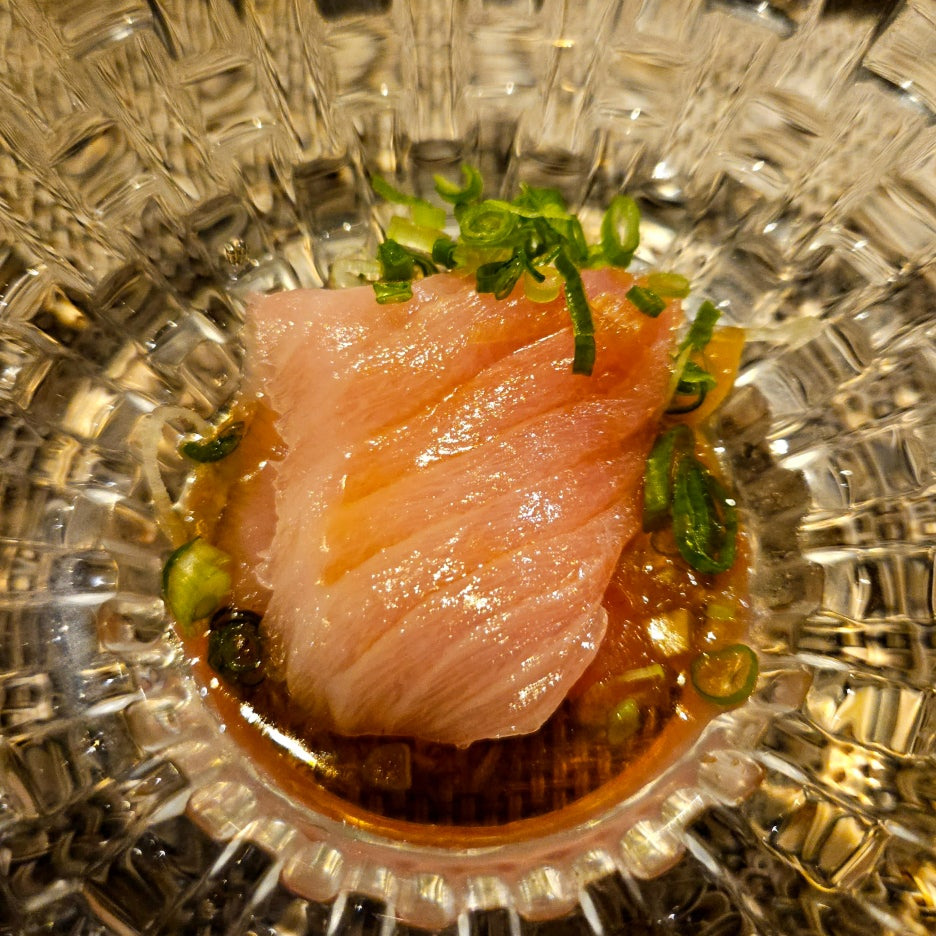 바삭한 파의 식감과 향이 비싼 금태의 맛을 더 살려준다. 깔끔한 안카케 소스는 다 마셔버려야 한다.