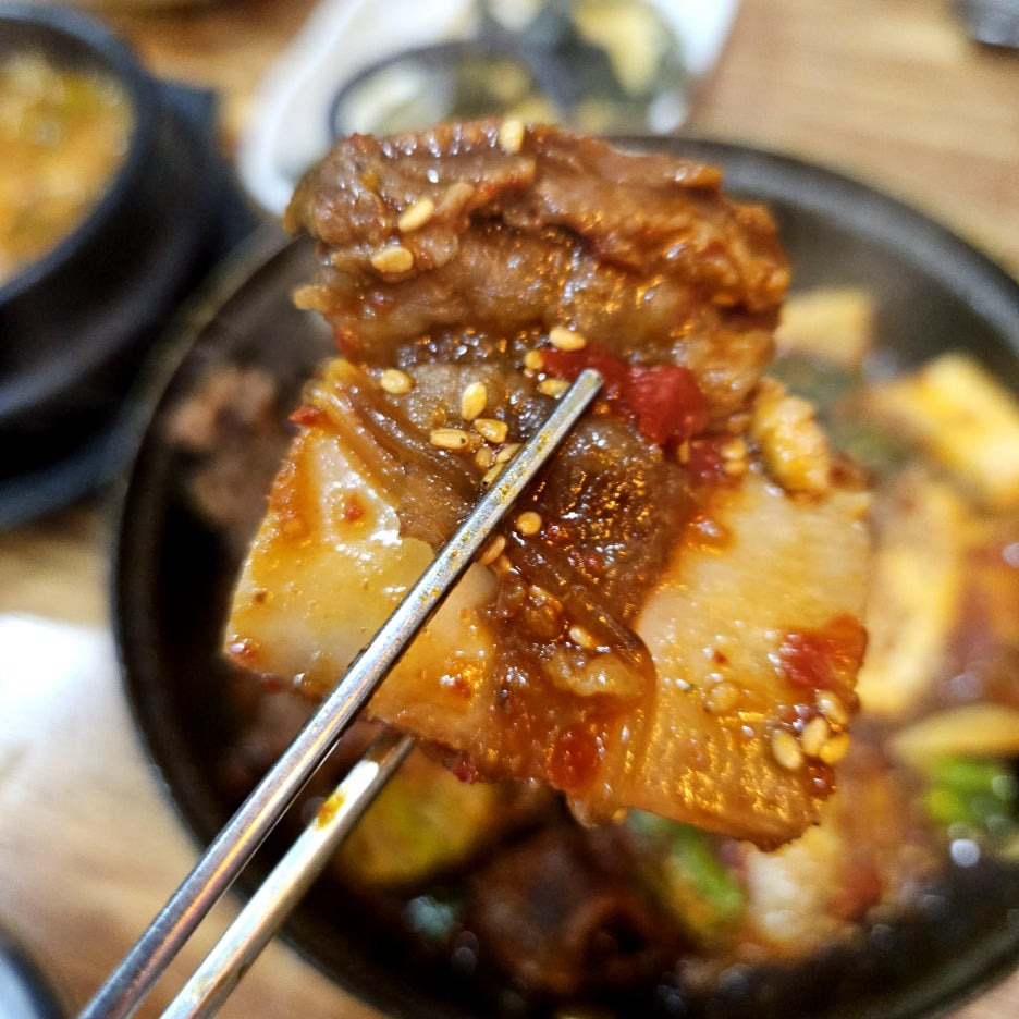 맛있긴 했지만, 나의 기대를 다 채워주지 못한 갈비들을 한참 먹고 있을 때, 내어준 갈비뼈 찜. 이건 보자마자 눈이 휘둥그레. 상당히 비주얼이 좋다. 사실 갈비의 양도 많지 않다고 느끼고 있었는데, 꽤 많은 양이 이 갈비뼈 찜으로 변신을 했기에 그런가 보다.