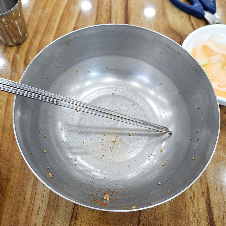 역시나 오늘도 깔끔하고 완벽하게 완료. 오랜만에 너무나 맛있게 잘 먹었다. 역시 최고의 밀면집이다.
