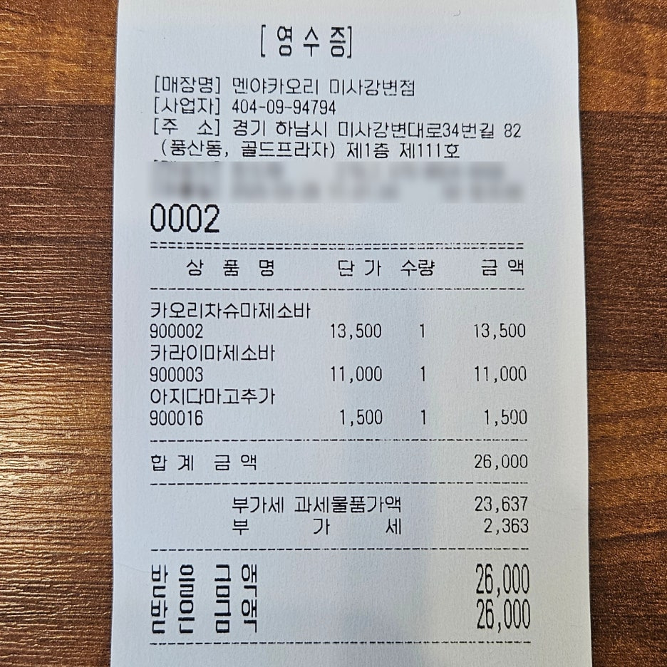 우리의 주문 내역. 요즘 동네 라멘집도 이렇게 가격이 많이 올랐다. 만원 이하로는 아무것도 먹을 수 없네.