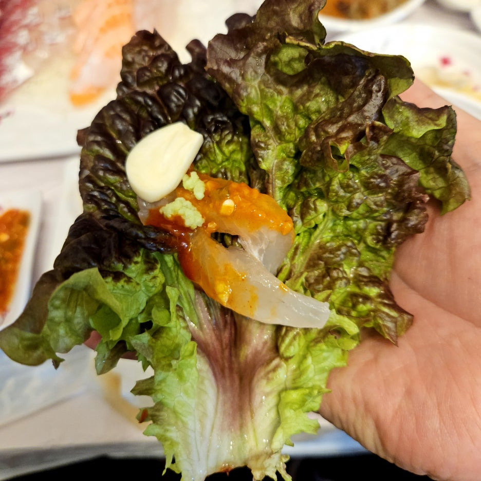 진산수산이 좋은 점은, 따로 초장집을 갈 필요 없이, 1인당 5천 원에 바로 앉아서 먹을 수 있는 공간이 이렇게 마련되어 있는 것. 편해서 그런지 하남 수산시장의 엄청나게 많은 다른 집을 가지 않게 되었다.