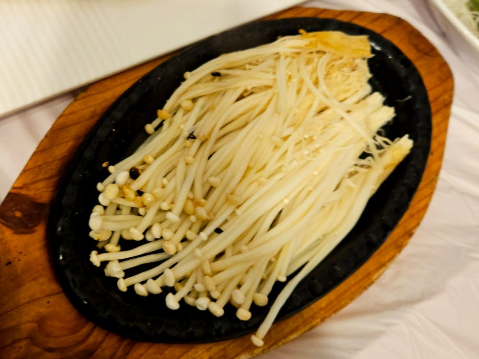 회 나오기 전에 소주 한 잔과 함께 하기 좋은, 애피타이저인 버터 팽이버섯 구이. 철판에 나와서 적절히 알아서 잘 구워져서 고소하다.