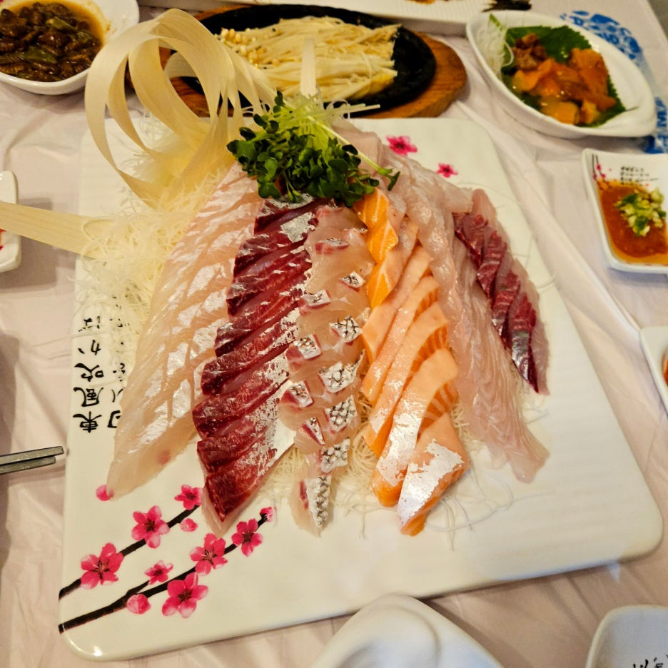 드디어 나왔다, 보리숭어를 품은 모둠회. 아주아주 푸짐하다. 전에는 소자를 먹었는데, 회를 좋아하는 나에게는 조금 양에 모자라서, 오늘은 중자로 플렉스 한다. 진산 수산에 오면 언제나 주문하는 초대리밥. 셀프 스시를 만들어 먹기 위한 최고의 선택. 횟집에서 초대리밥을 판매하고 있다는 것은 최고의 행운.