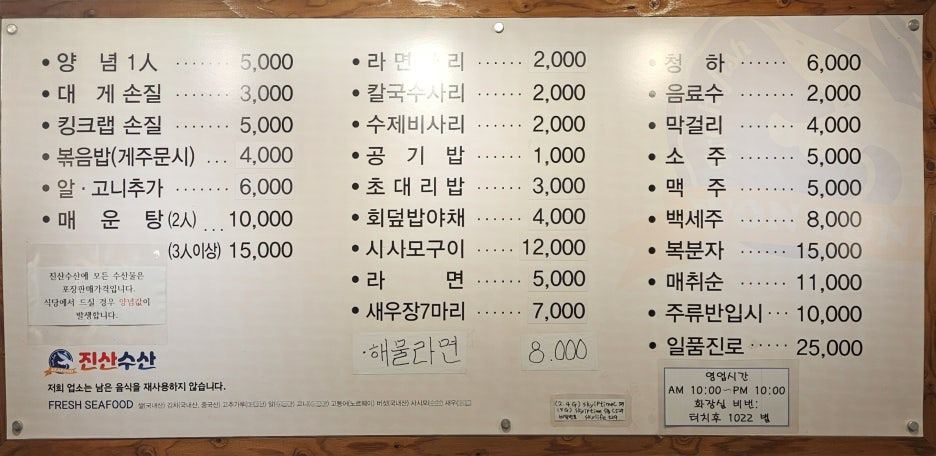 진산 수산에 한번 방문해 보시길 강추 드린다.