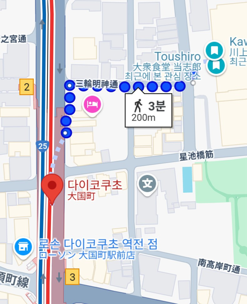 키즈 도매시장은 난바 역에서 걸어서 1.2km 17분, 다이코쿠초역에서 200m 3분이면 갈 수 있는 곳.