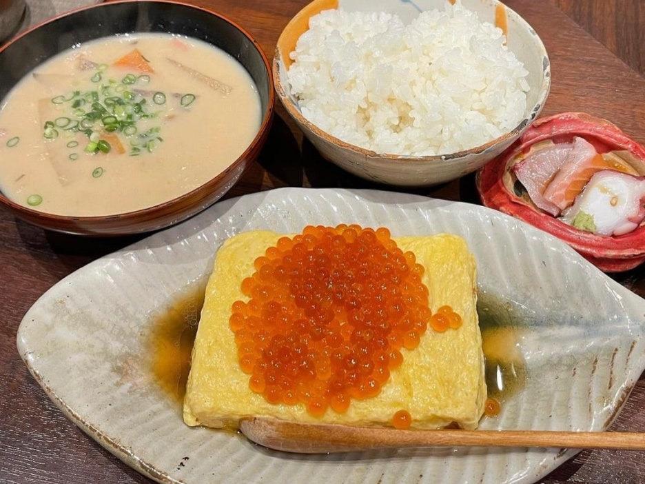 아침식사로 이쿠라가 양껏 올라간 달걀말이라니, 호화로운 느낌.