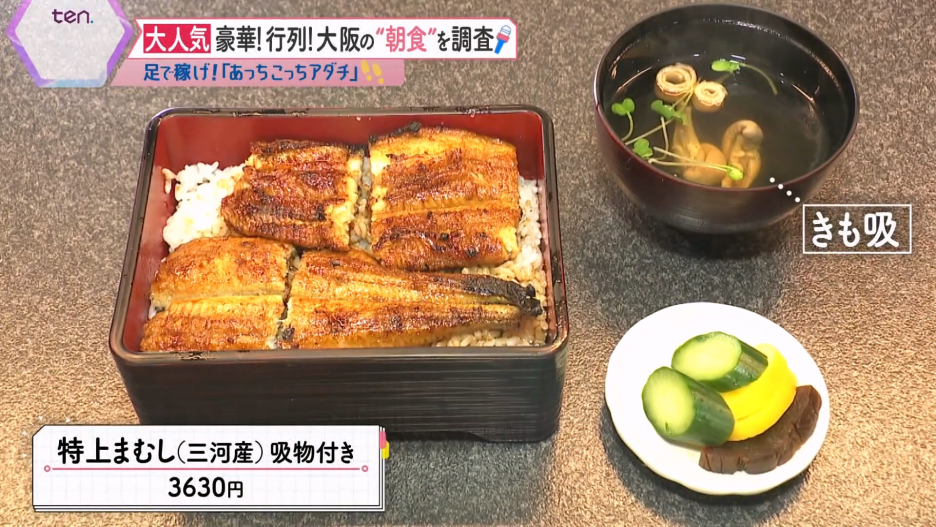 가장 비싼 한상 차림. 특상 장어덮밥에 장어 간이 들어간 국물 세트는 3630엔.