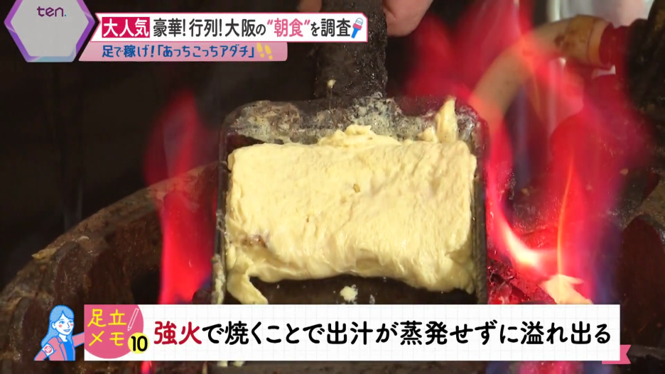 그리고, 강한 불로 굽기 때문에 계란의 육즙이 증발하지 않고 넘쳐난다고. 거의 국물과 같은 느낌으로 먹을 수 있다.