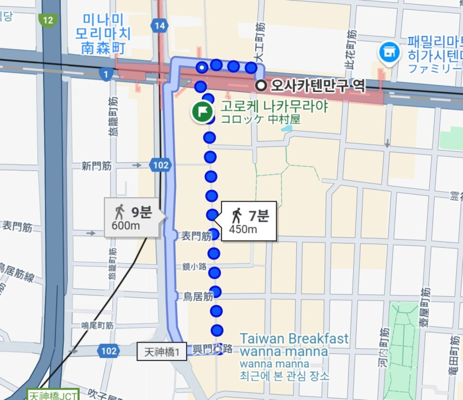 마지막으로 가 볼 곳은 오사카 텐만구. 대만식 아침을 즐길 수 있는 완나만나.