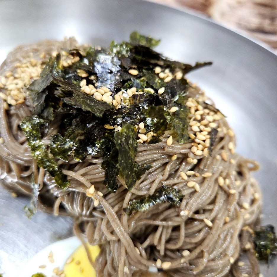 들기름이 아주 좋은 품질은 아닌 듯하다. 들기름 막국수를 전문으로 파는 곳에 비하면 아쉽다. 고소함은 있으나, 깊은 맛을 내지는 않는다. 그리고 간장류의 포인트를 주며 간을 맞춰주는 소스가 없어, 심심한 맛이다.