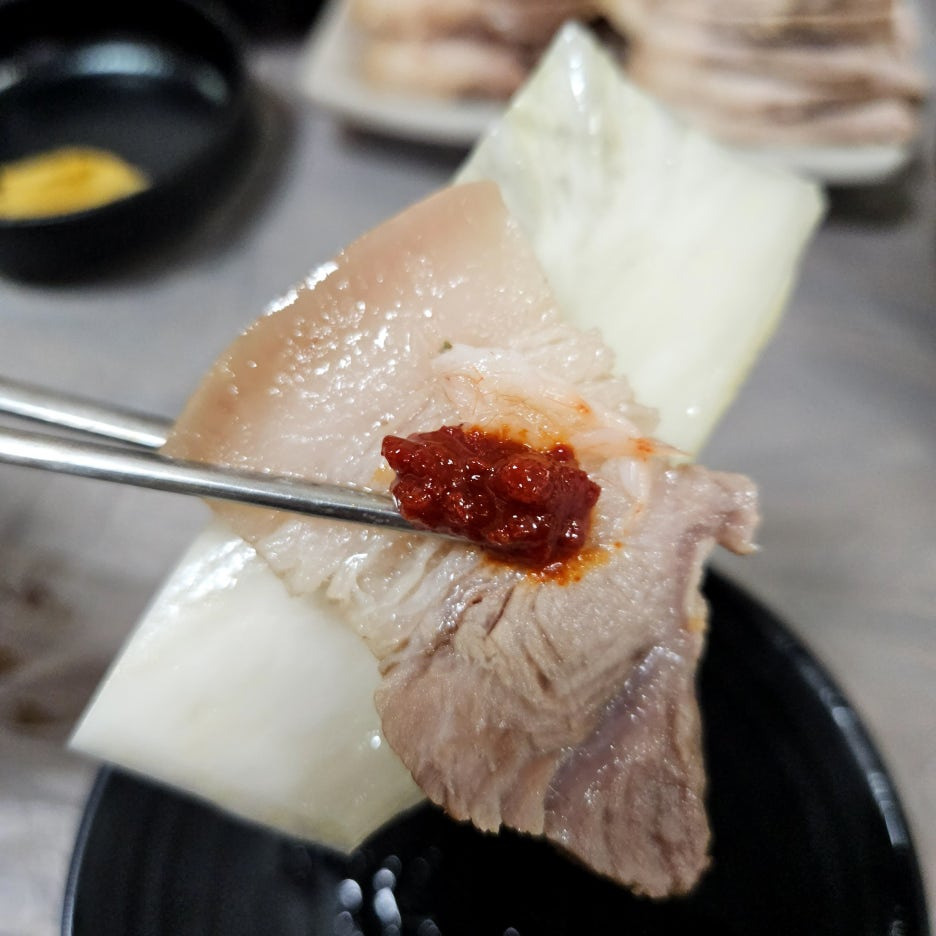 함께 나온 비빔장이 물건이다. 맵지 않고 달달한 맛으로 편육에 엑센트를 준다. 반드시 비빔장과 함께 드셔보시길.