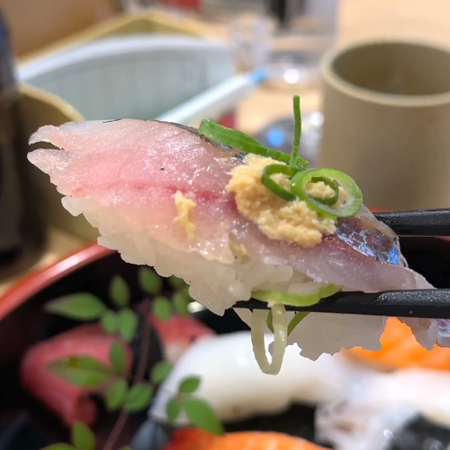 추천 런치 메뉴는 1000엔짜리 쇼군 스페셜. 총 10개의 니기리 스시와 1개의 테마키로 구성된다. 니기리 스시는 고급 재료를 사용한 구성은 아니지만, 여기도 전어가 들어가는 것이 특징.