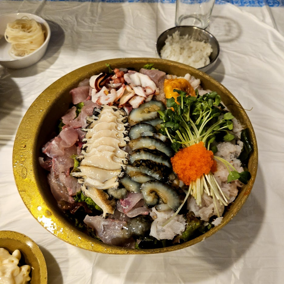 다양한 재료가 엄청 들어가 있고, 걸쭉한 느낌의 국물도 좋다. 하지만, 이곳의 섭국이 다른 곳과 차별화된다는 것은 느끼지 못했다. 장점은 물회와 함께 먹을 수 있다는 것일 듯. 밥과 함께 먹으면 괜찮다는 느낌.