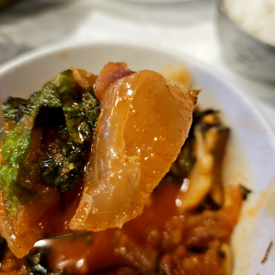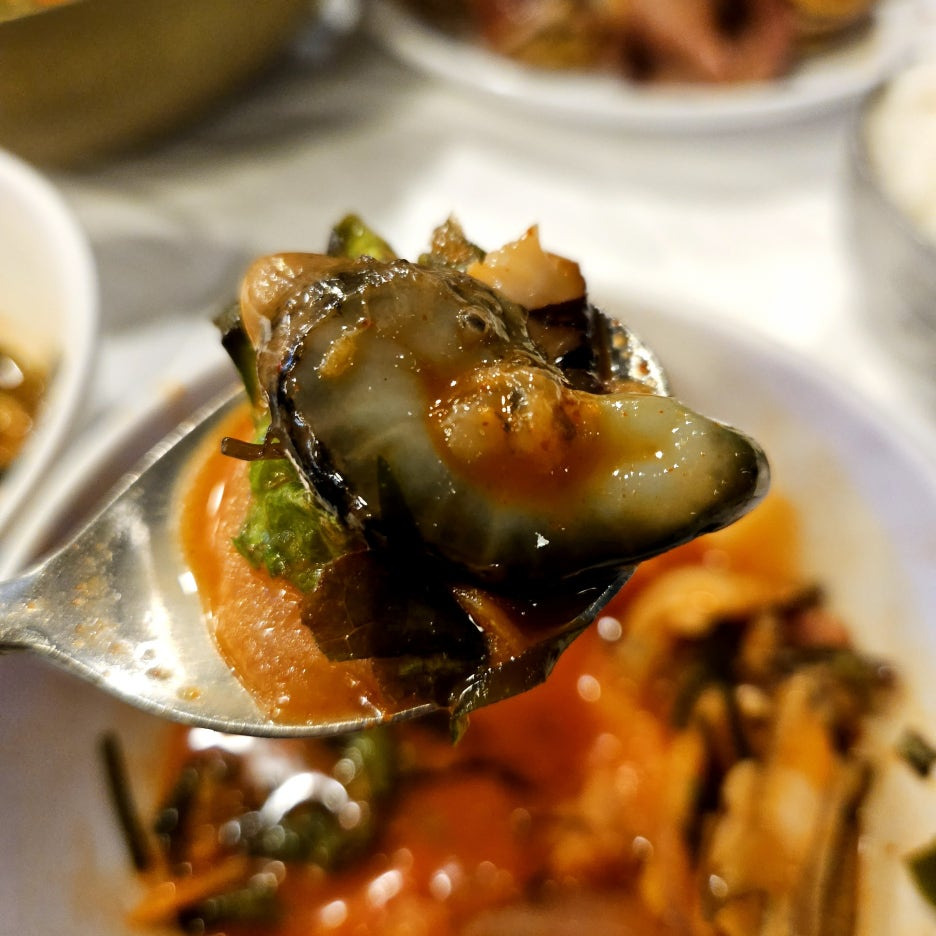 쫄깃하다고 해야 할까? 해삼의 식감은 참 독특하기도. 별 맛이 없게 느껴지지만, 비싼 재료다. 살짝 풍기는 바다향이 이 녀석의 매력인 듯.